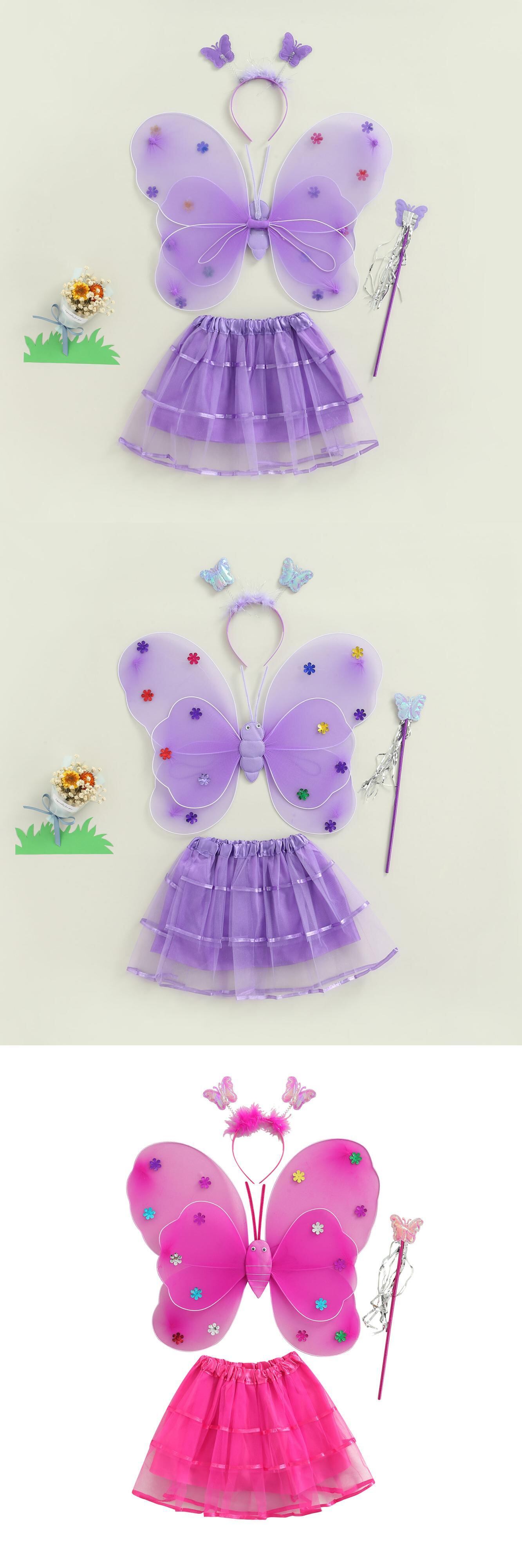 新作 Ma&Baby3-6Y子供子供女の子服セットパーティー誕生日バタフライウィングチュチュスカートヘッドバンド衣装プレイスーツD11