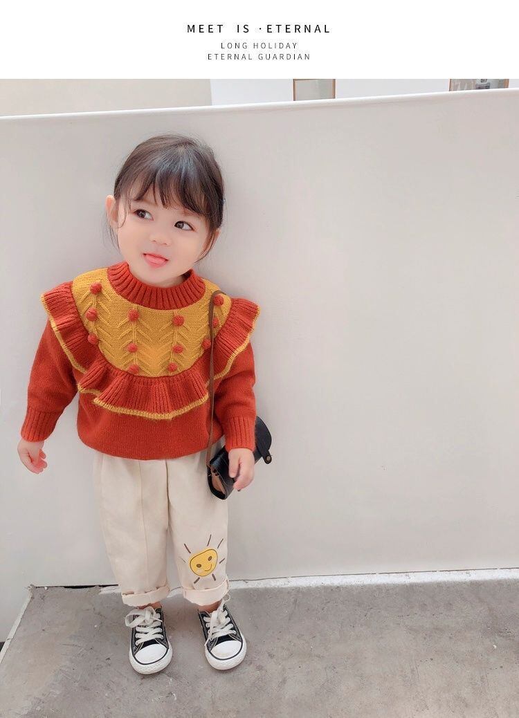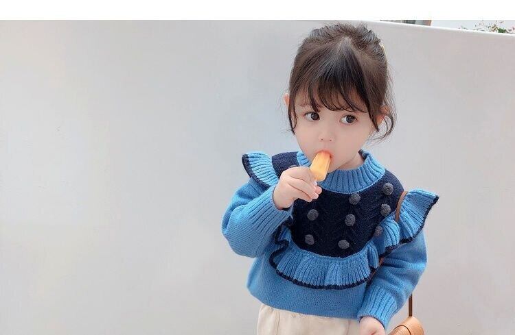 新作 キッズセーターオータムフリルガールズカーディガンニットウールチルドレンガールズ服装トップスチルドレンガールズウォームウィンターセーター