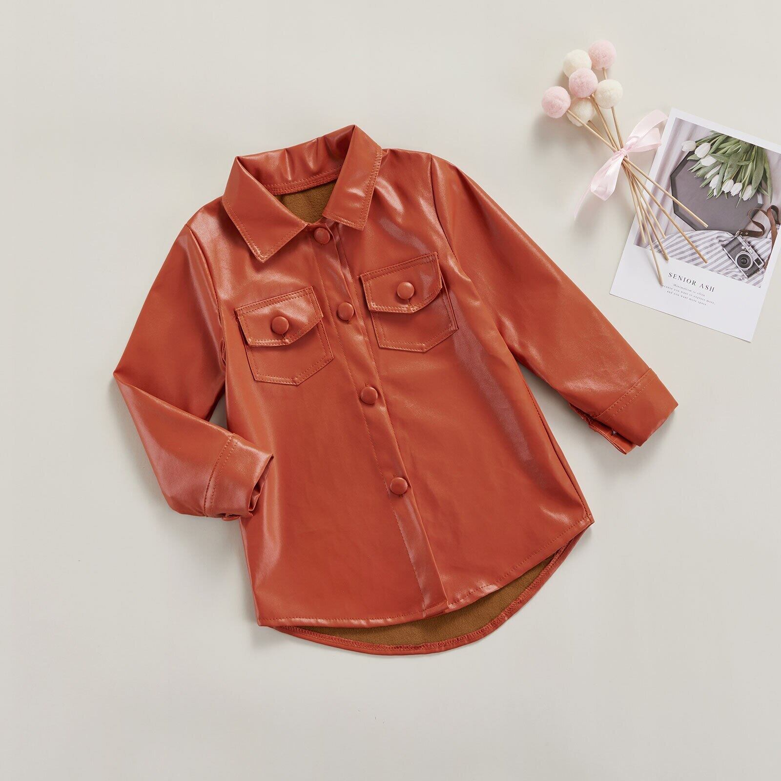 新作 Ma&Baby2-7YキッズガールズPuレザードレス長袖ポケットストレートドレスガールズ秋春子供s