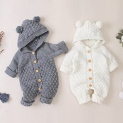 新作 3-24M生まれのセータージャンプスーツ幼児男の子女の子カーディガンフード付き秋冬生まれロンパース服暖かいニットベイビーベベ