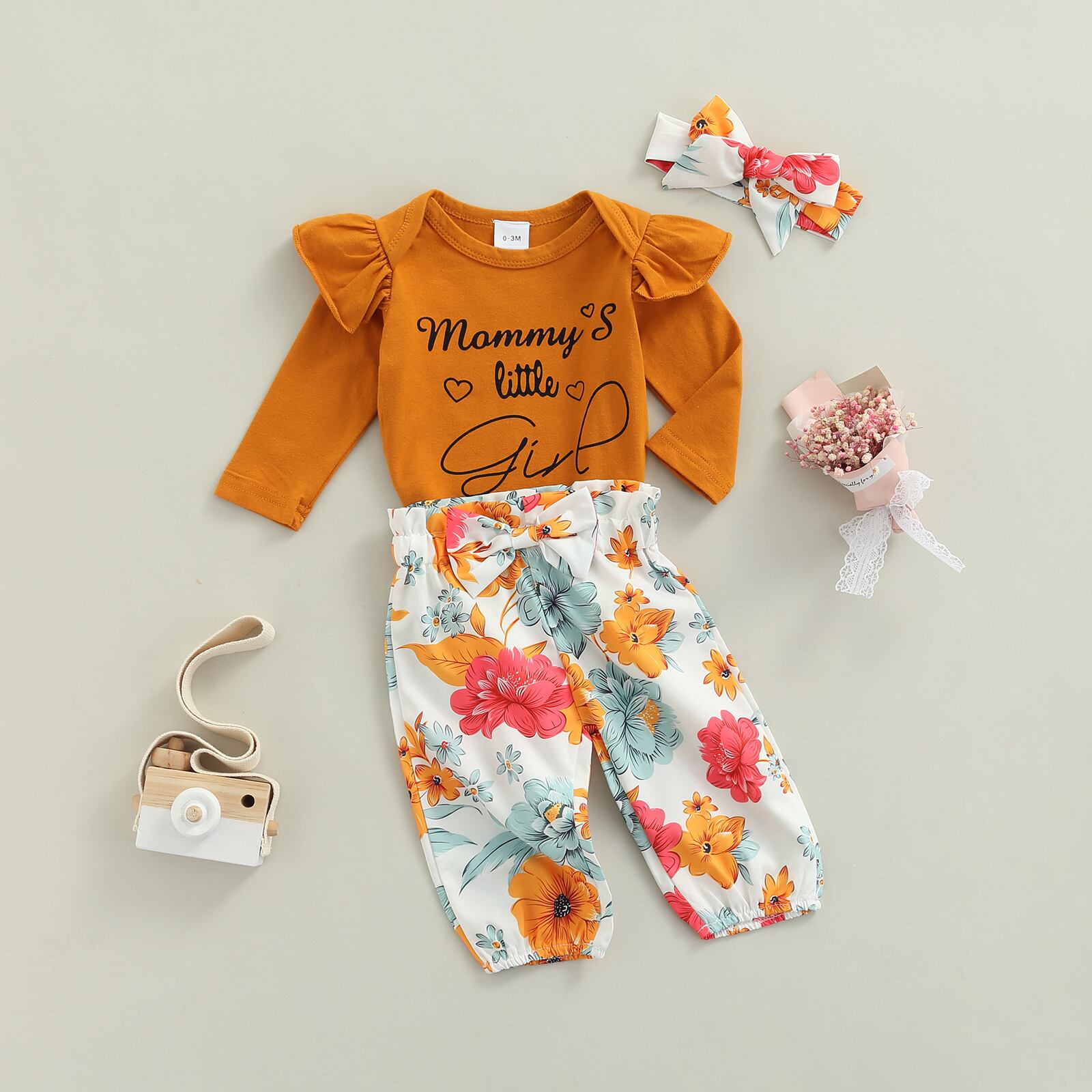 新作 Ma&Baby0-18M生まれの幼児の赤ちゃんの女の子の服セット長袖レターロンパースフローラルパンツの衣装秋春のD11