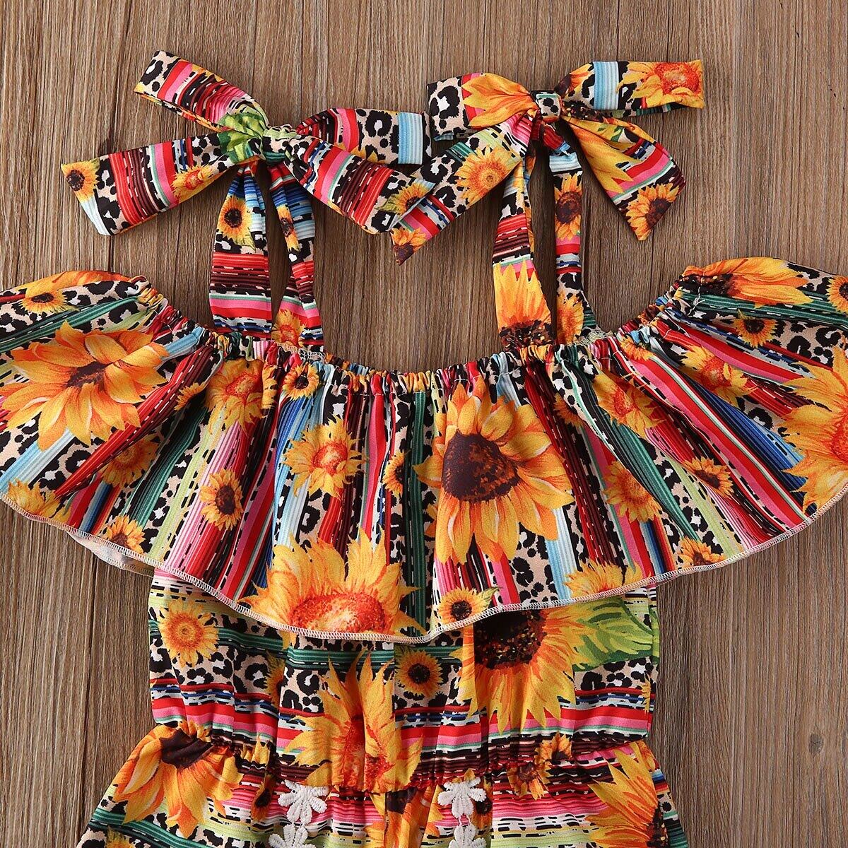 新作 1-5歳幼児生まれのベビーキッドガールズフラワーロンパースレースヒマワリジャンプスーツプレイスーツサマーチルドレンガールズ