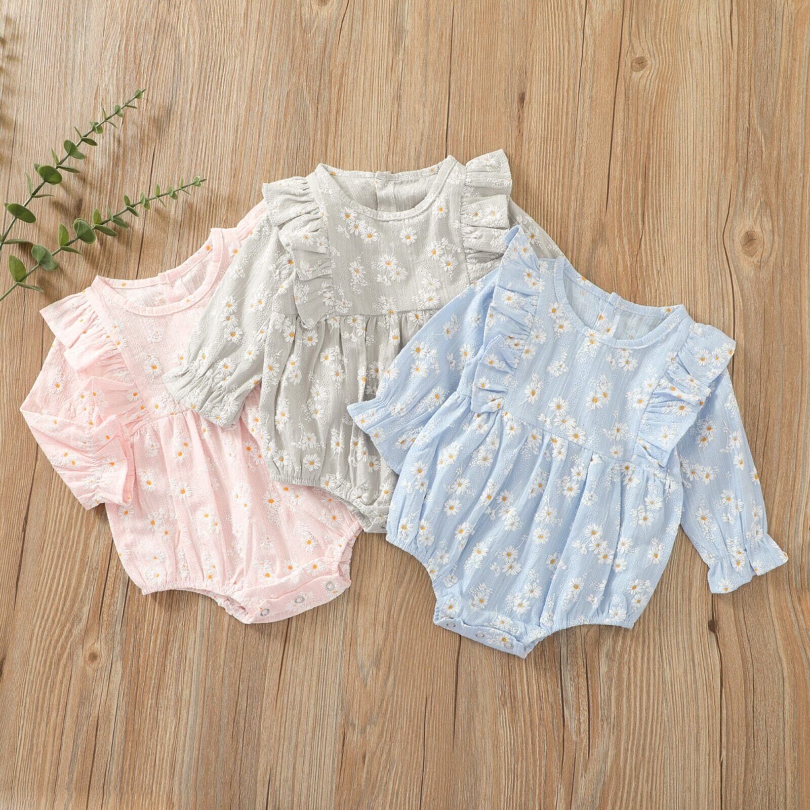 新作 Ma&Baby0-24M生まれの幼児の赤ちゃんの女の子フラワーロモア長袖フリルジャンプスーツヴィンテージフローラルプリントプレイスーツ衣装DD40
