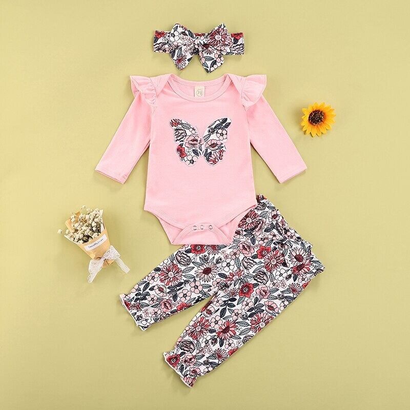 新作 Ma&Baby0-24M生まれの幼児用ベビーガールズ洋服セットバタフライロンパース+フローラルパンツ衣装AutumnSpring s D84