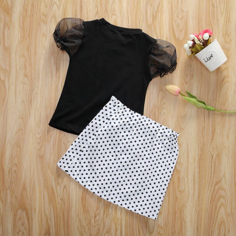 新作 1-6Y幼児ベビーキッドガールズ洋服セットブラックレースTシャツドットスカート衣装夏s