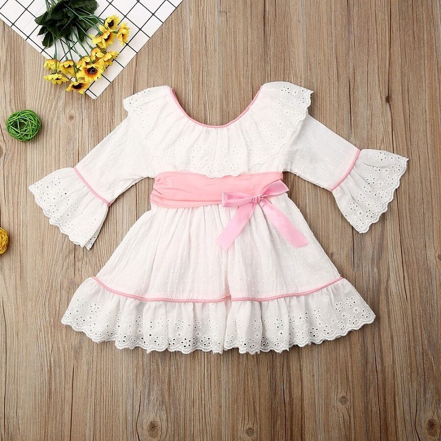 新作 1-6歳幼児ベビーキッズガールドレスボウレースフリルウェディングパーティーツツドレスガールズオータムガールキッズ