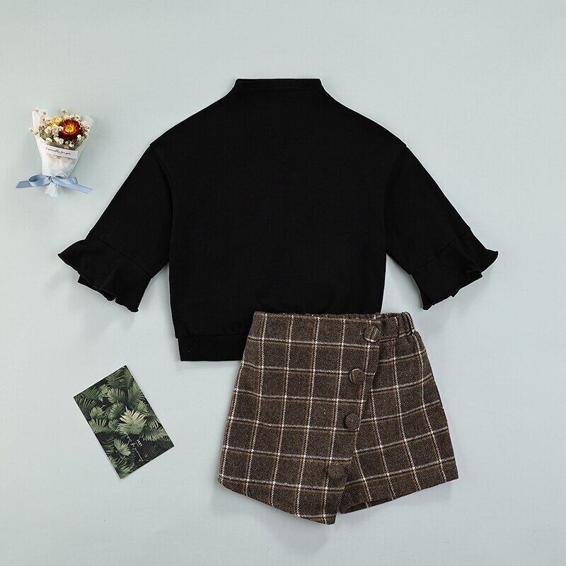 新作 Ma&Baby18M-6Y秋の幼児キッドガールズ洋服セット長袖フリルトップスチェック柄スカート衣装s子供