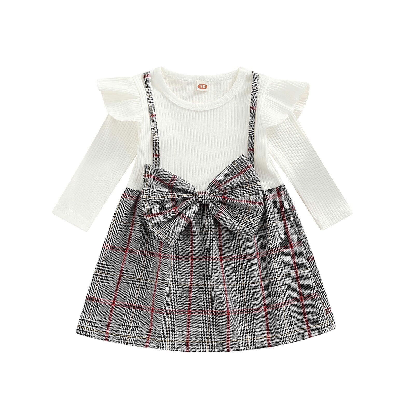 新作 Ma&Baby0-24M生まれの幼児ベビーガールチェック柄ドレス長袖ボウAラインドレスガールズ秋春sD11