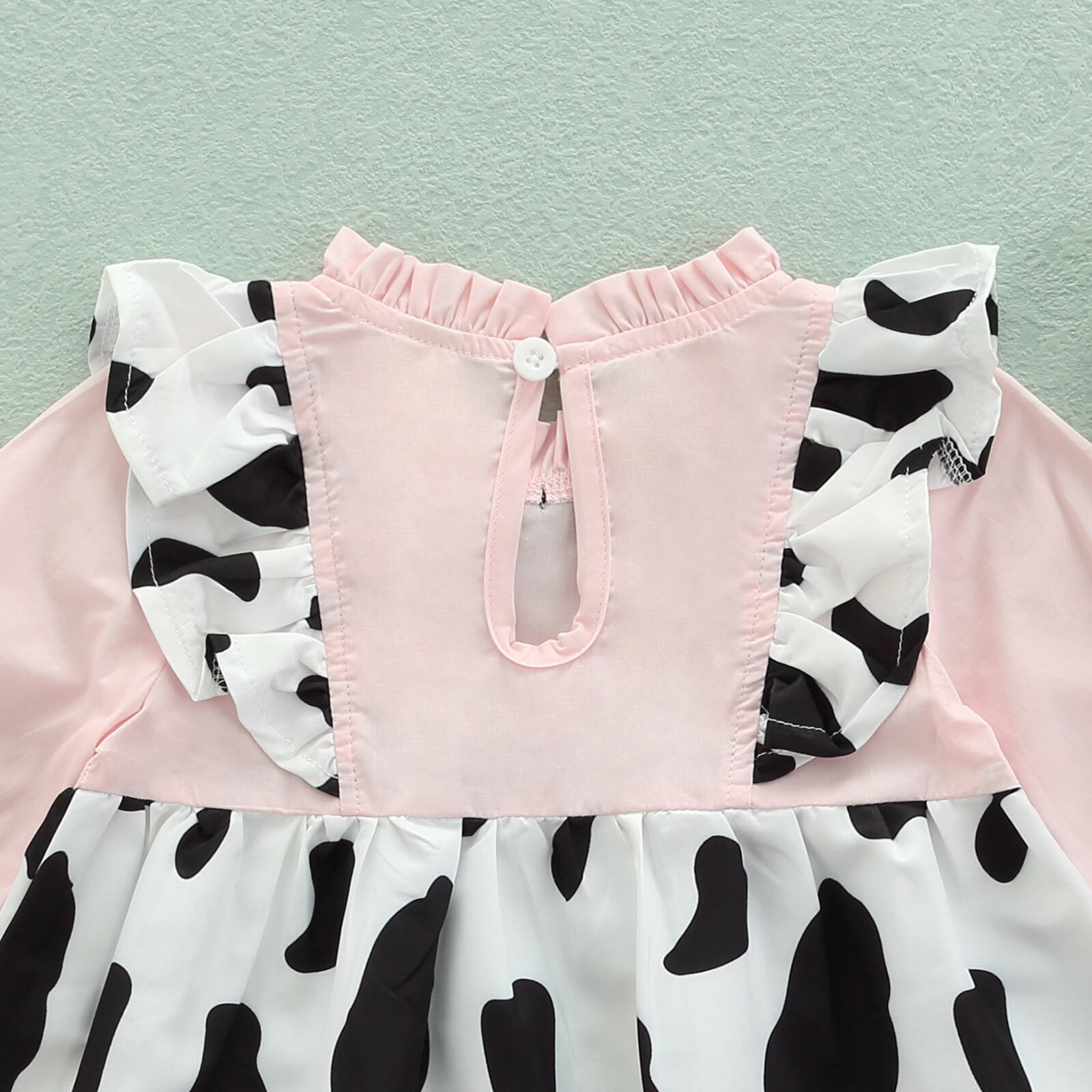 新作 Ma&Baby0-24M生まれの幼児ベビーガールズドレスフリルミルクプリントAラインドレスガールズ秋春長袖D11