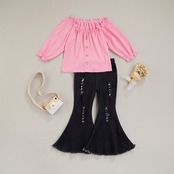 新作 Ma&Baby1-6Y子供子供女の子服セットフリル長袖トップスデニムフレアパンツジーンズ秋の服DB88