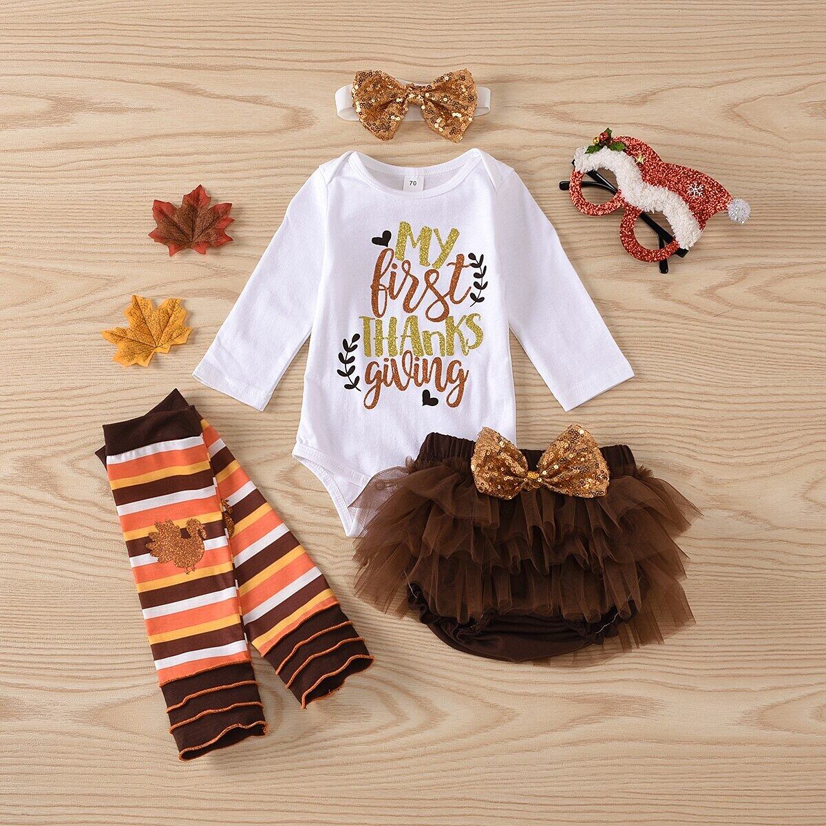 新作 Ma&Baby0-18M感謝祭生まれの幼児の女の赤ちゃんの服セットレター長袖ロンパースチュチュスカート衣装