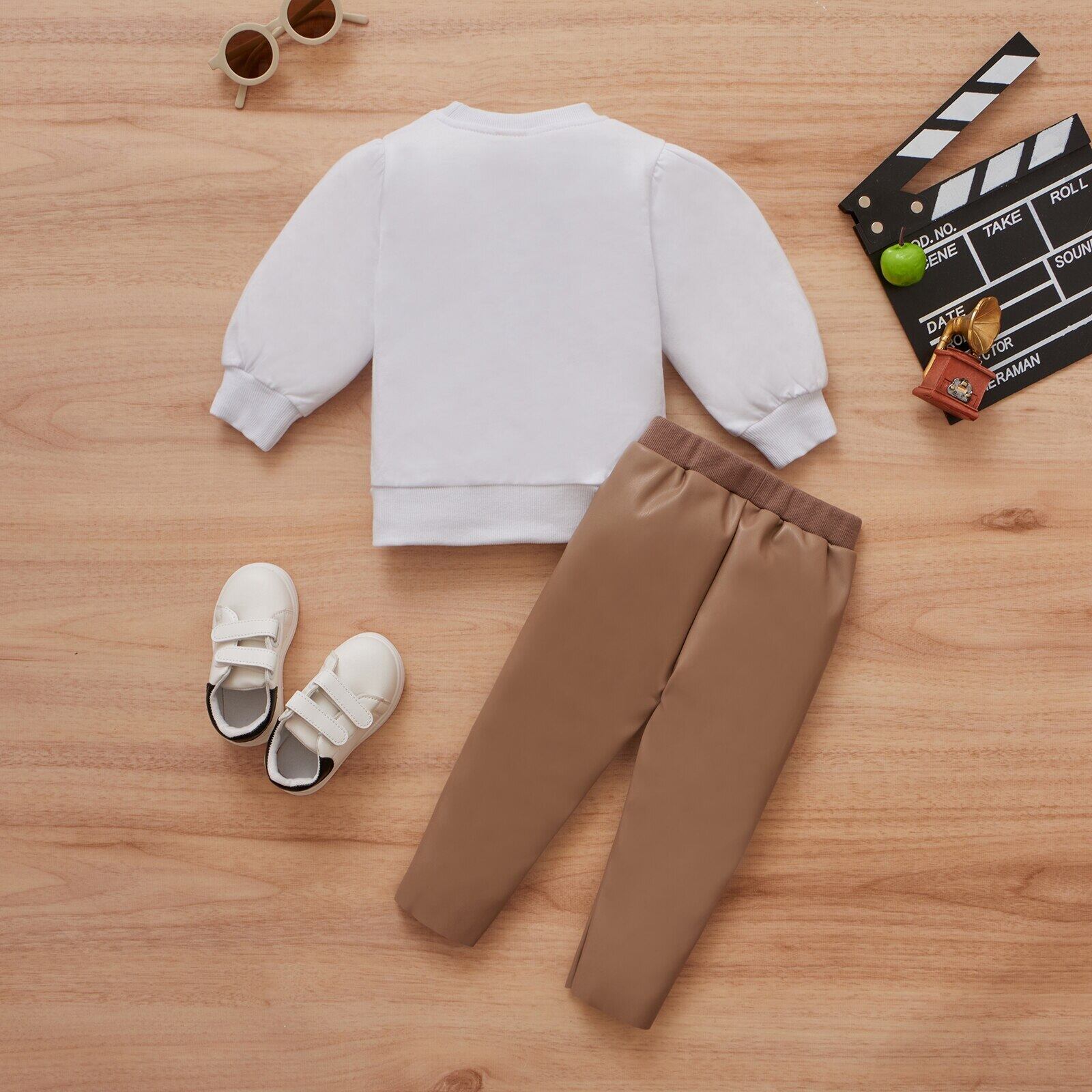 新作 Ma&Baby6M-4Y幼児キッドガース服セット長袖ボウスウェットシャツトップスPuレザーパンツ衣装s