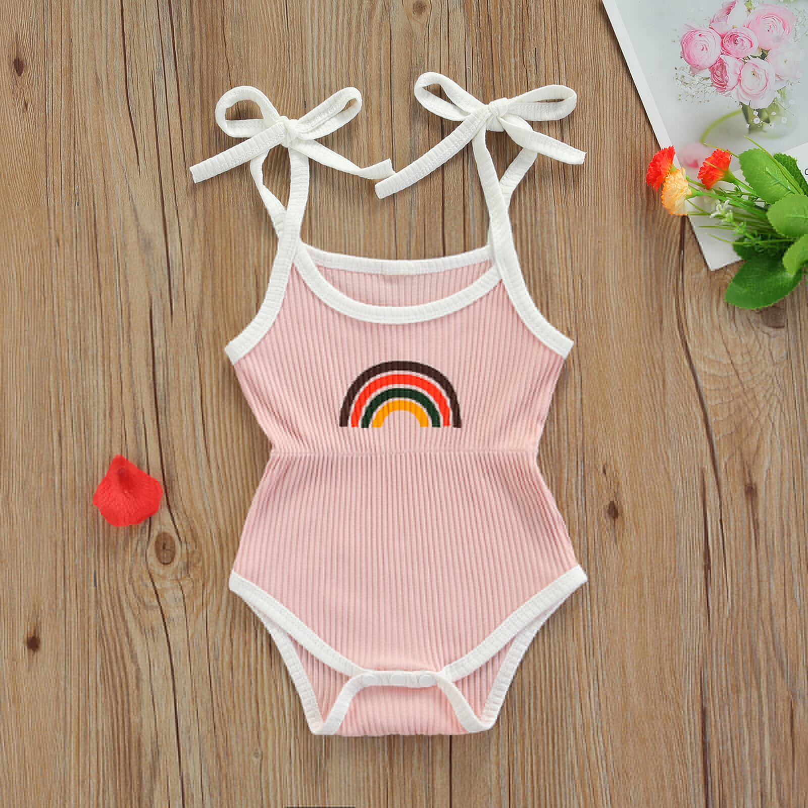 新作 Ma&Baby0-24Mレインボープリント幼児生まれのベビーガールロンパースサマーノースリーブニットジャンプスーツプレイスーツDD15