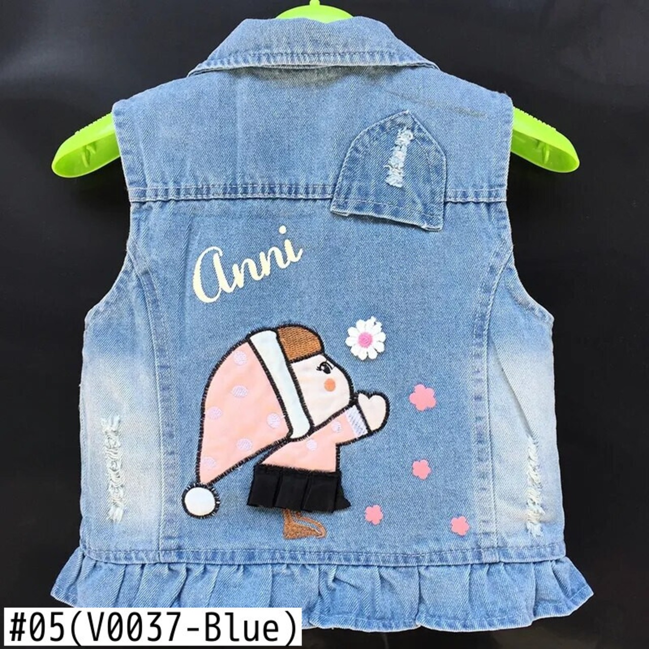 新作 ベビーガールズデニム漫画ベストジャケットコート衣装幼児キッズスパンコール刺繍ガールズチョッキ子供アウターウェア