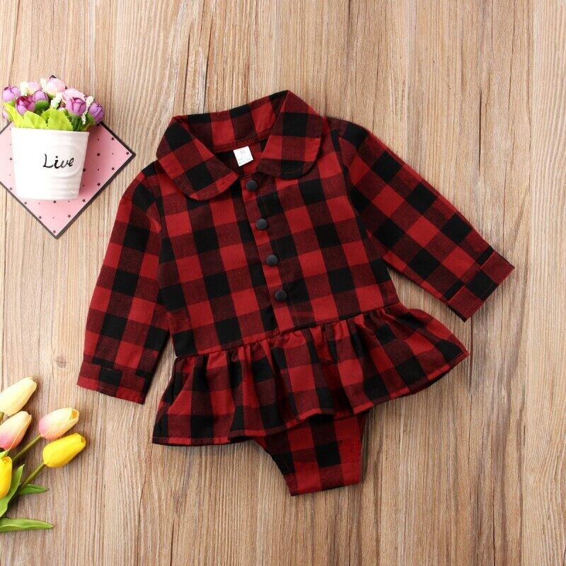 新作 Pudcoco生まれのベビーガールチェック柄コットンロンパース幼児女の子長袖フリルジャンプスーツトップス衣装0-24M
