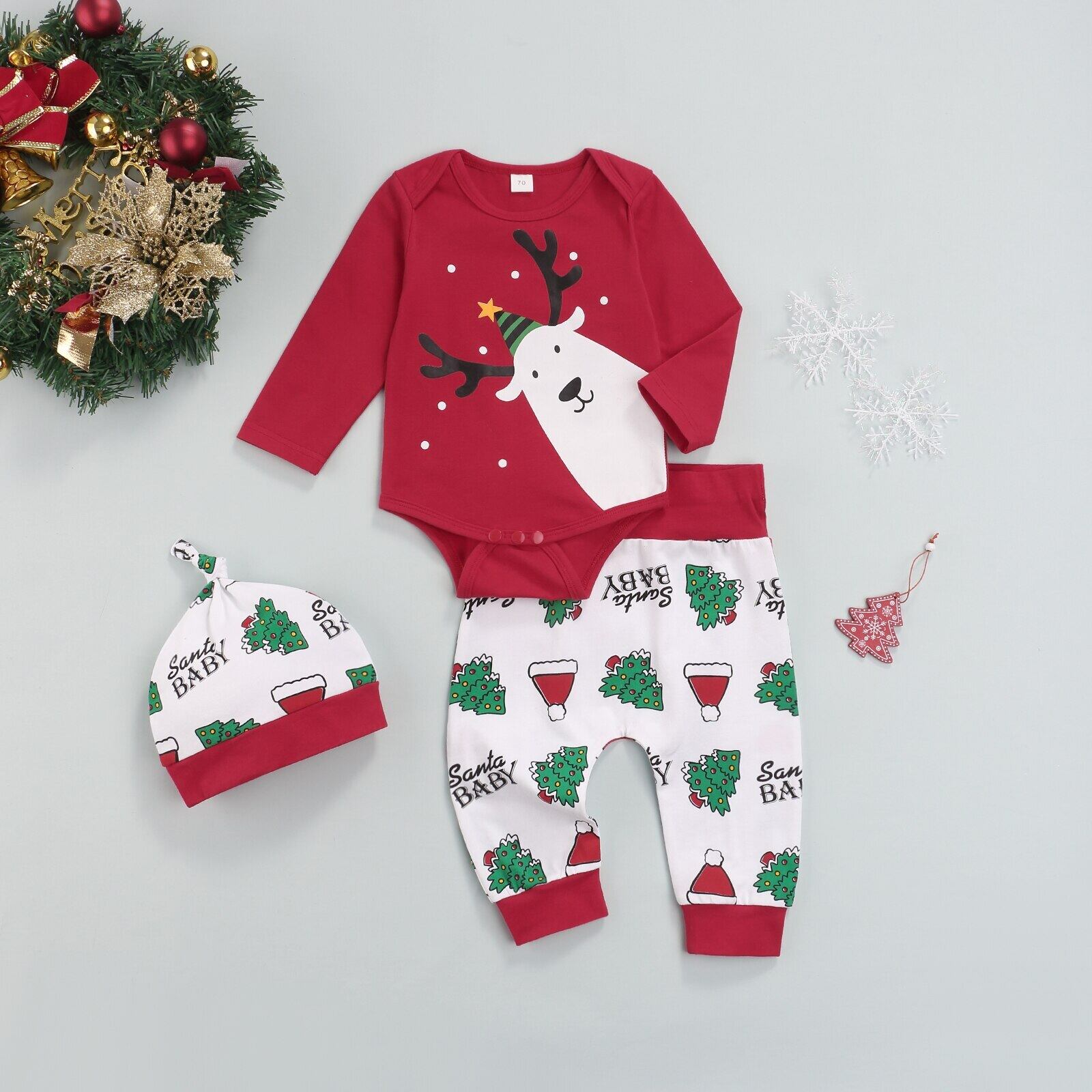 新作 Ma&Baby0-18Mクリスマス生まれの幼児男の子女の子服セット長袖ロンパースパンツ帽子クリスマス衣装D11
