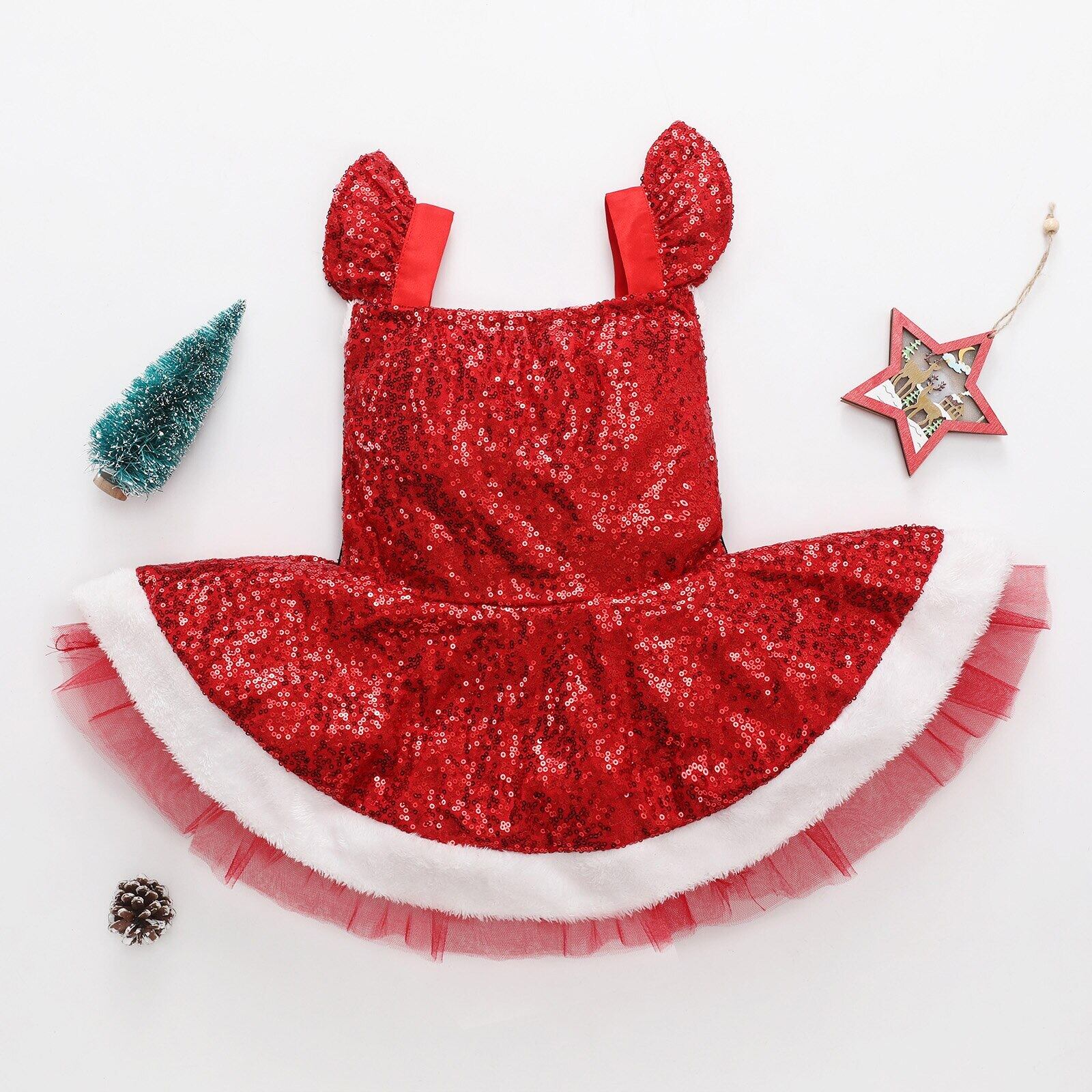 新作 Ma&Baby1-6Yクリスマス幼児キッドガールズ赤いスパンコールドレスノースリーブフリルTutuパーティードレスクリスマス年
