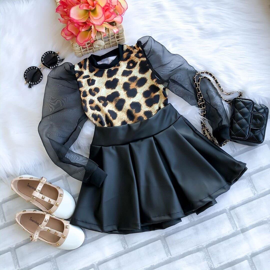 新作 Ma&Baby6M-5Y幼児幼児ベビーキッズ女の子服セット秋のレースヒョウトップスPuレザースカート衣装子供s