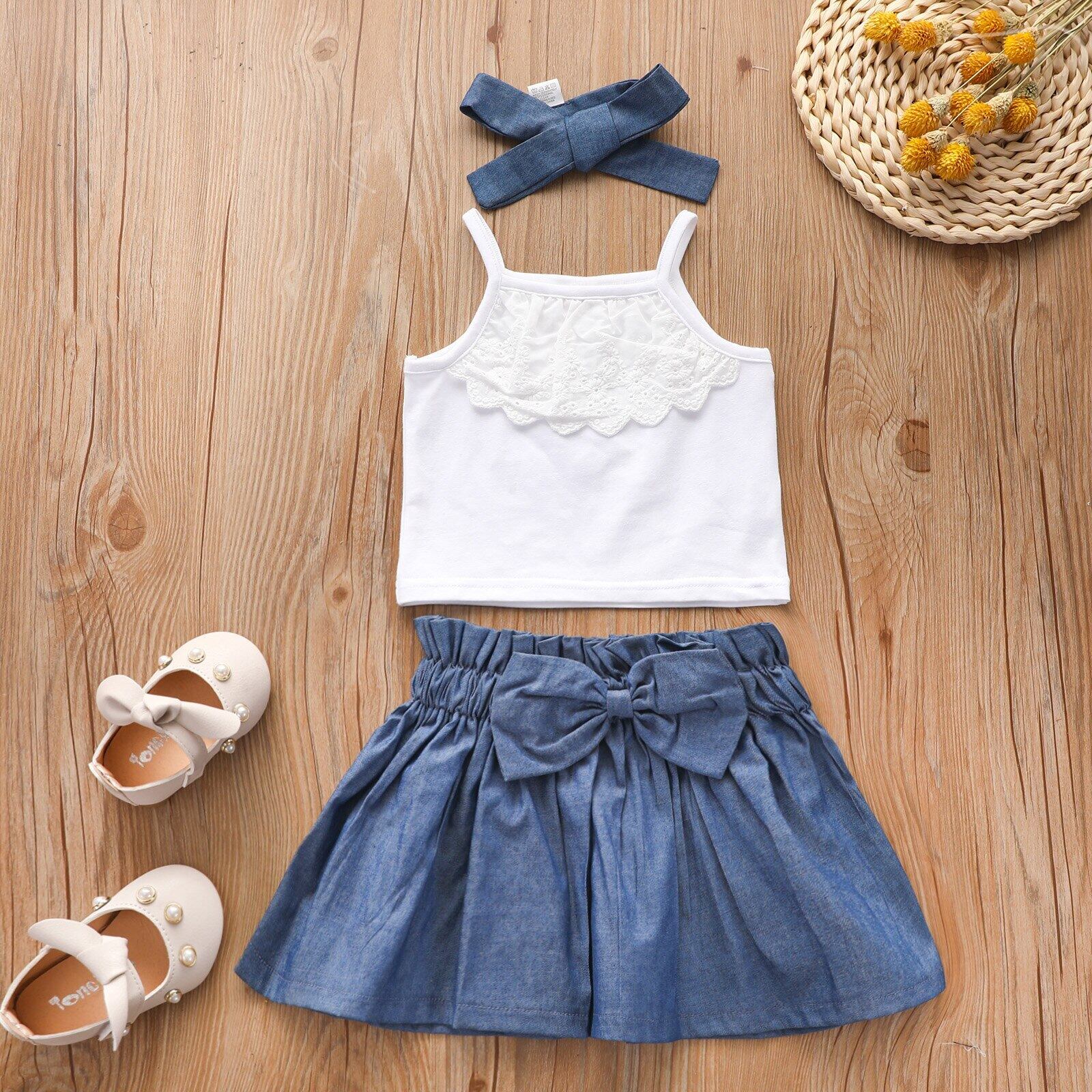 新作 Ma&Baby0-3Y夏の幼児幼児生まれの赤ちゃんの女の子の服セットレースベストトップスボウデニムスカート衣装s