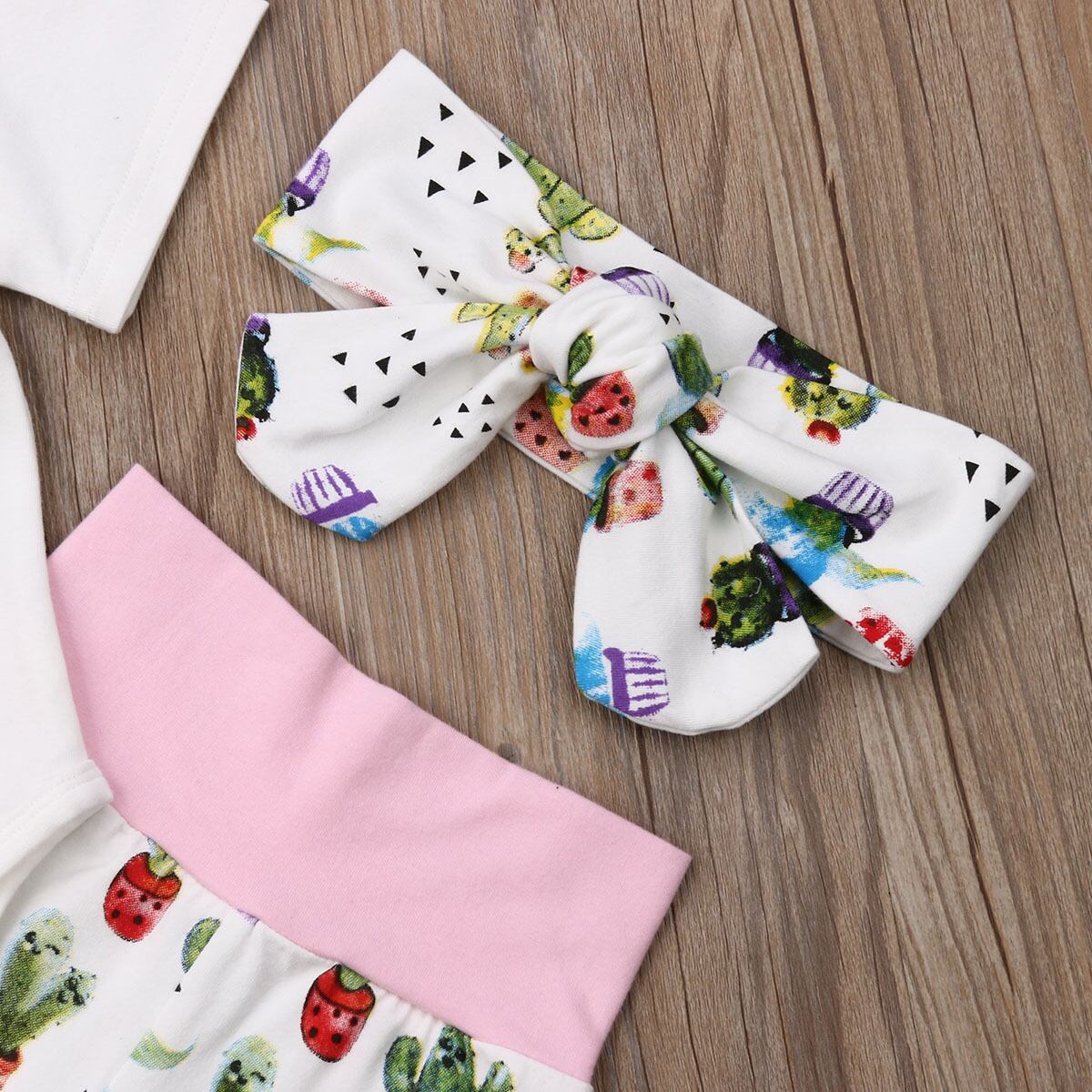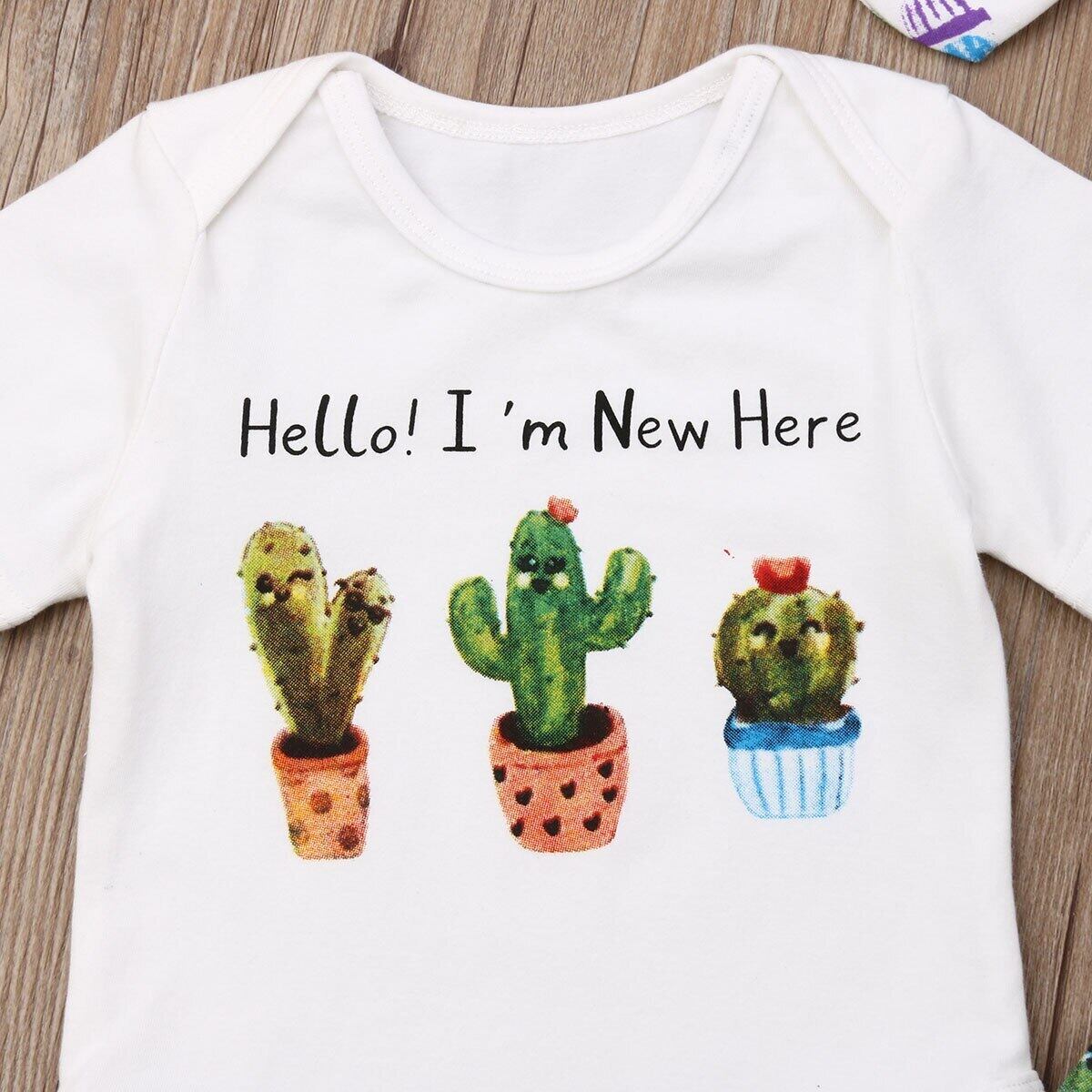 新作 0-18M綿生まれの女の赤ちゃんの男の子の服セット幼児のサボテンフラワーロンパース+パンツ+帽子+ヘッドバンドの衣装