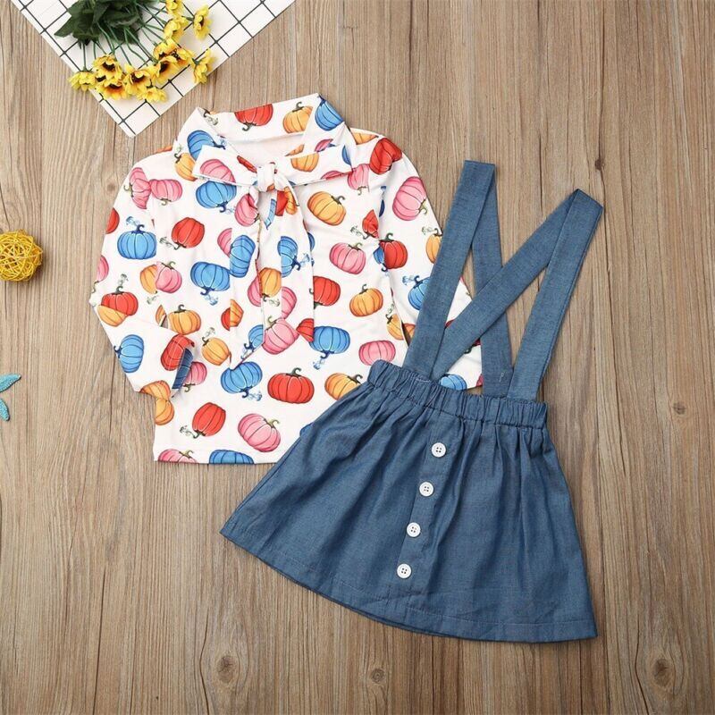 新作 1-6歳の女の子の幼児の赤ちゃんキッズガールセット漫画パンプキンボウシャツスカート衣装子供服