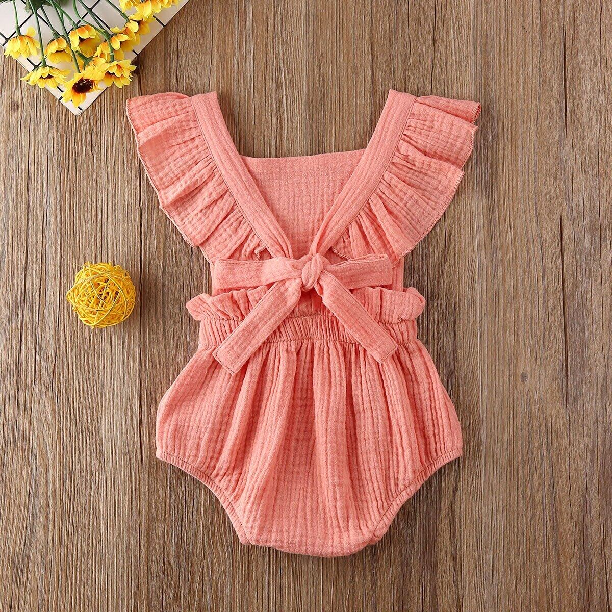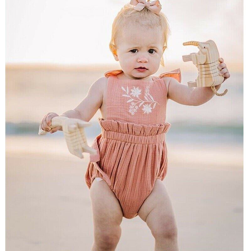 新作 0-24M生まれの幼児の女の赤ちゃんフラワーロンパースノースリーブフリルジャンプスーツオーバーオール春夏の女の赤ちゃん