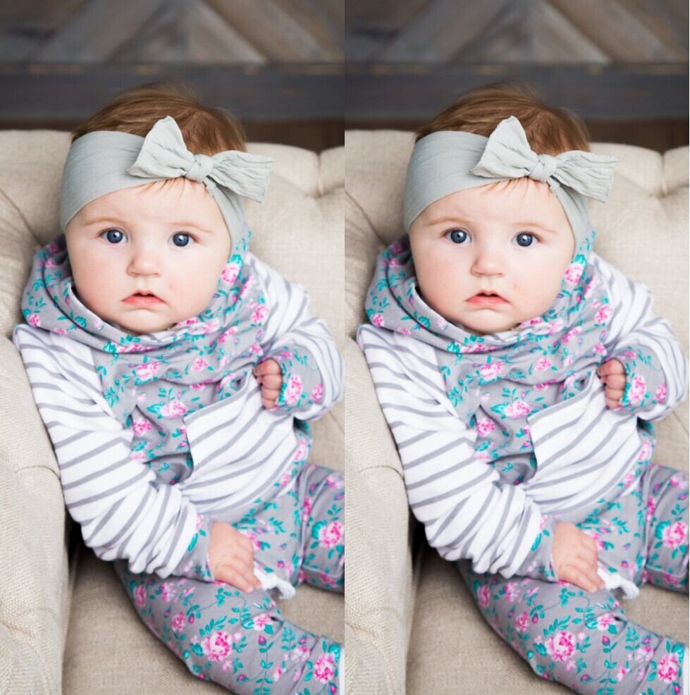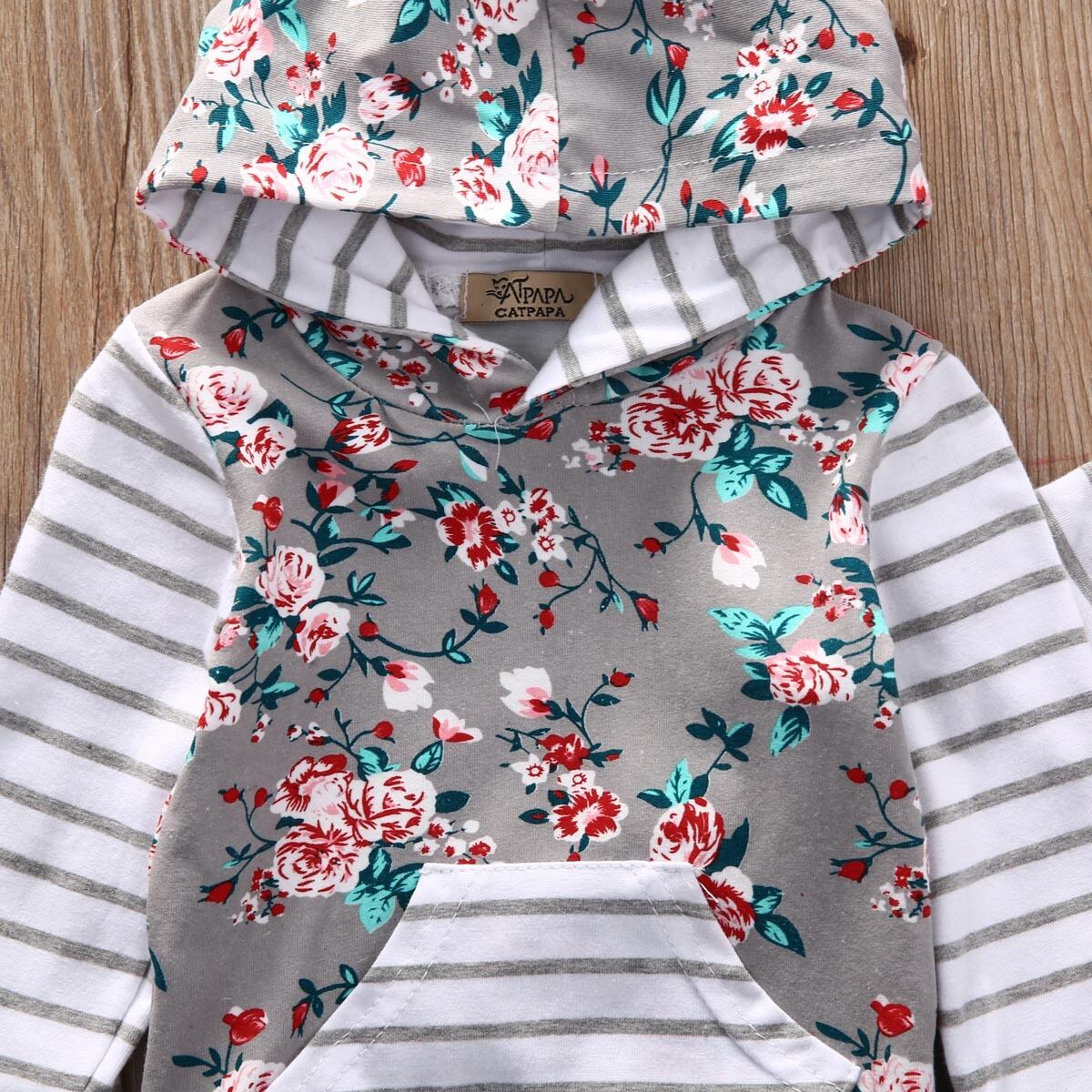 新作 かわいいベビーセット2016フローラル生まれのベビーガールズ服長袖フード付きトップス+パンツ衣装セット