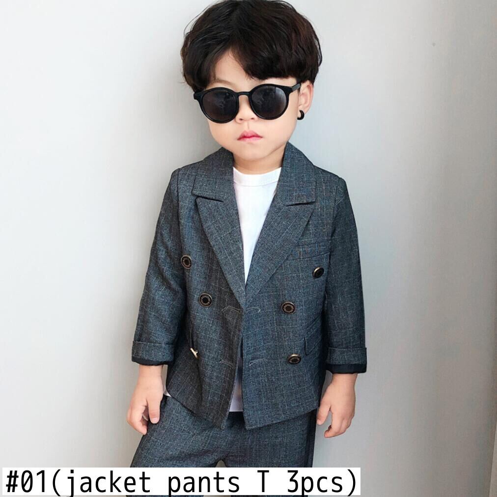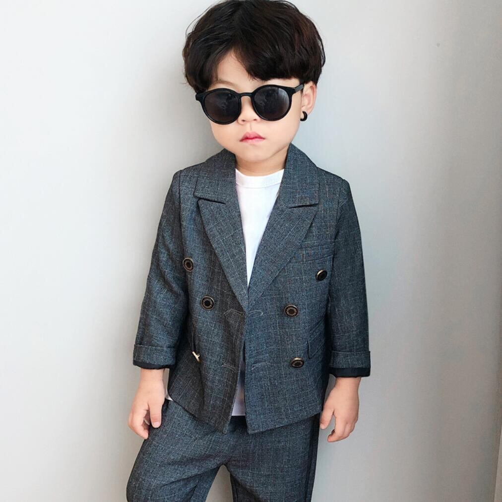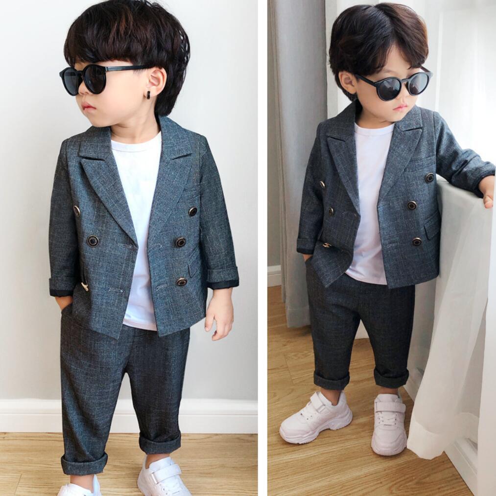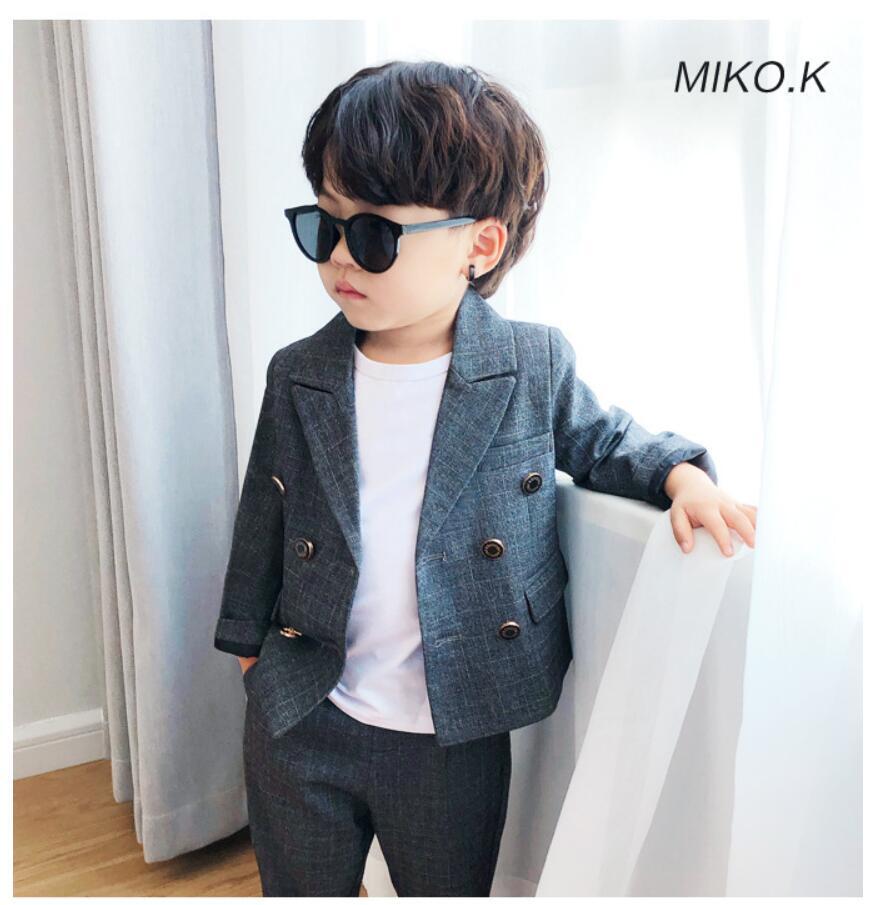 新作 フラワーボーイズマルドレススーツセット秋の子供格子縞2ボタンブレザーパンツ2個服セットキッズ結婚披露宴
