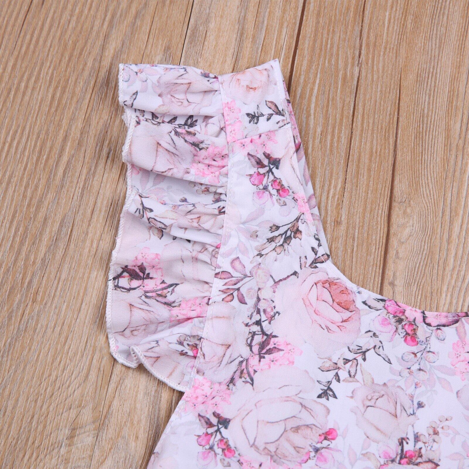 新作 0-18M夏生まれの女の赤ちゃんフライングスリーブロンパースかわいい花柄ラウンドネックフラワーパターンボウバックジャンプスーツ衣装