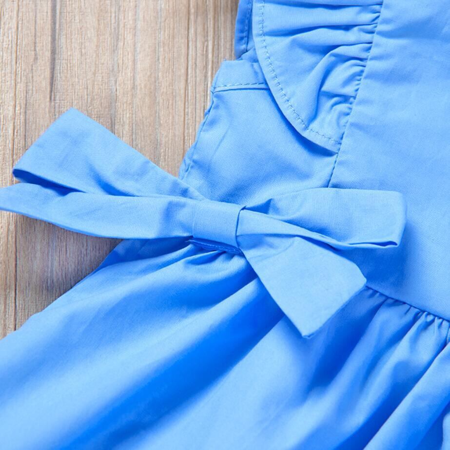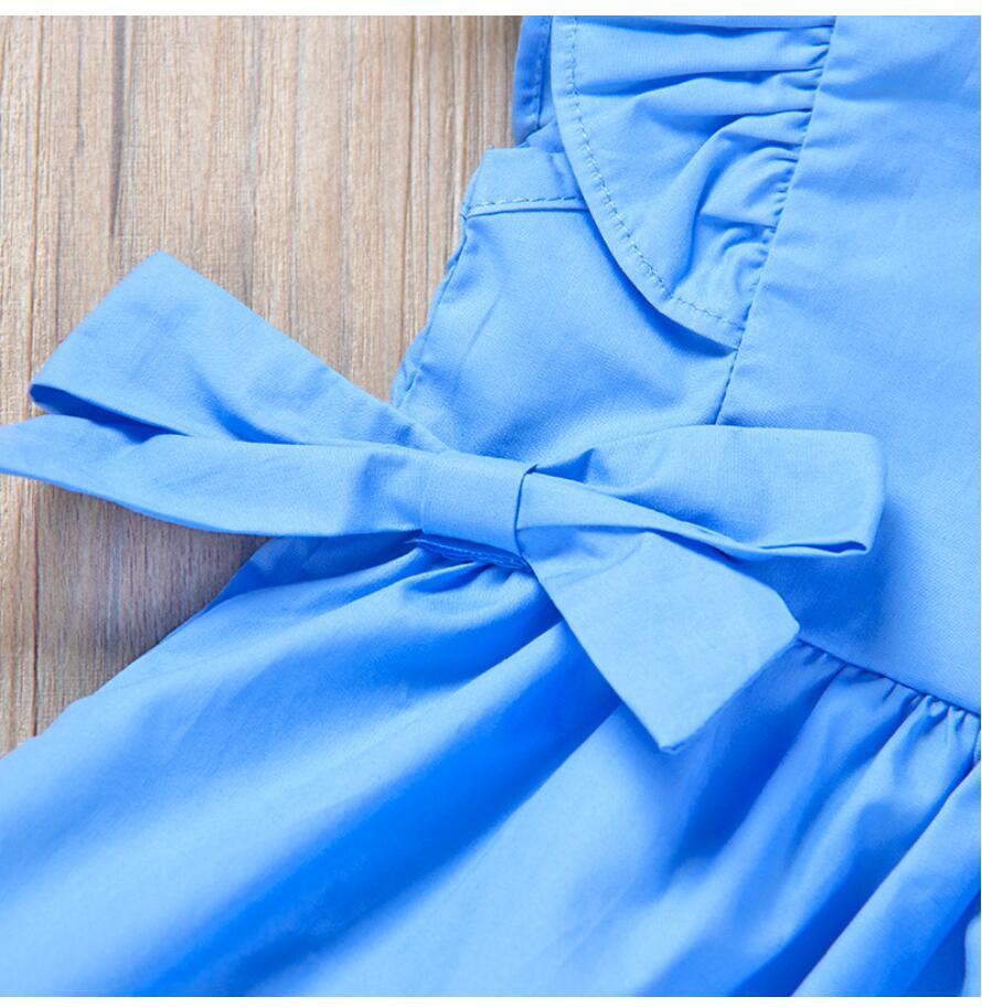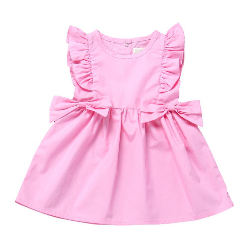 新作 夏の幼児の女の赤ちゃんフライスリーブソリッドボウドレスかわいいピンクブルーのサンドレスドレス女の赤ちゃんの衣装ローブVestido