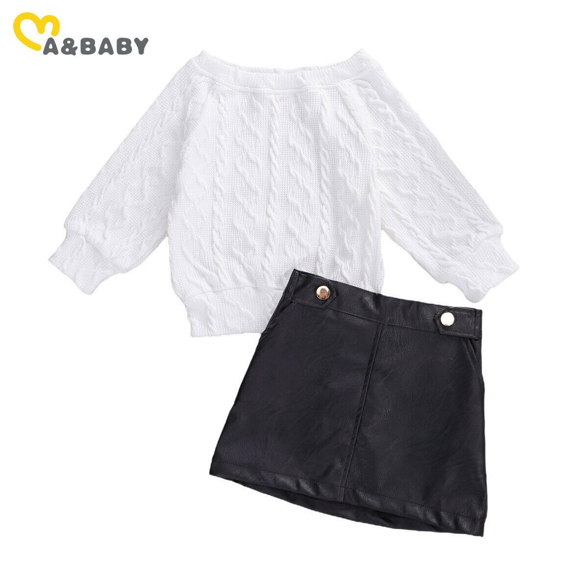 新作 Ma&Baby2-7Y幼児キッドガールズ洋服セットホワイトセータートップスブラックPuレザースカート衣装秋冬子供用セット