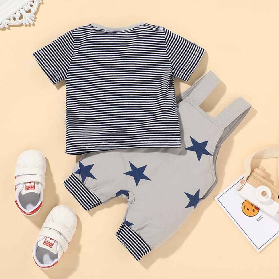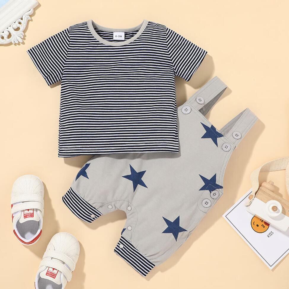 新作 2021年夏の男の子のセットストライプTシャツベビースターストラップショーツ幼児と幼児子供快適な服