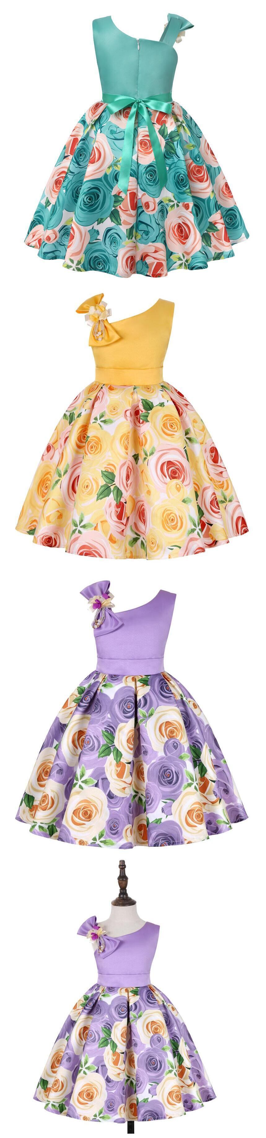 新作 女の子のドレスローズフラワーボウノットワンショルダーページェント誕生日結婚披露宴子供ドレス34 5 6 78年