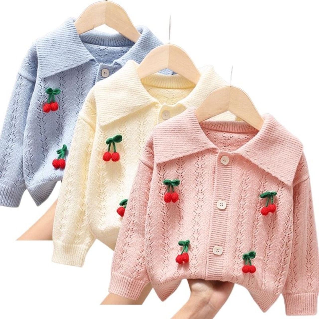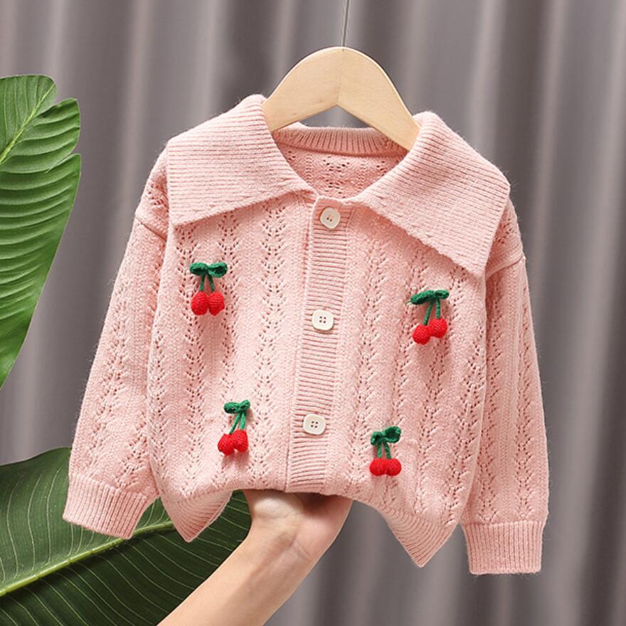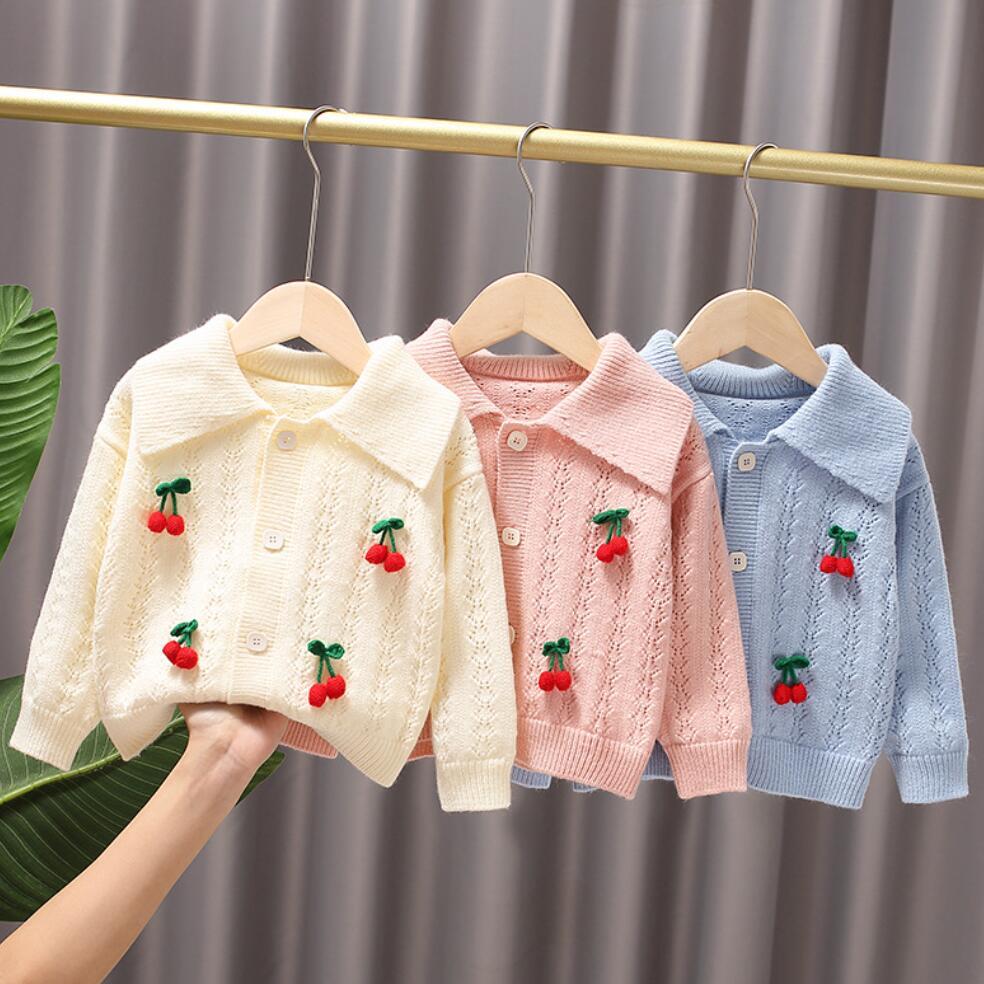 新作 幼児の女の子のベビー服キッズ衣装カーディガンジャージーニットセーターコート子供学校スウィートチェリーセーター