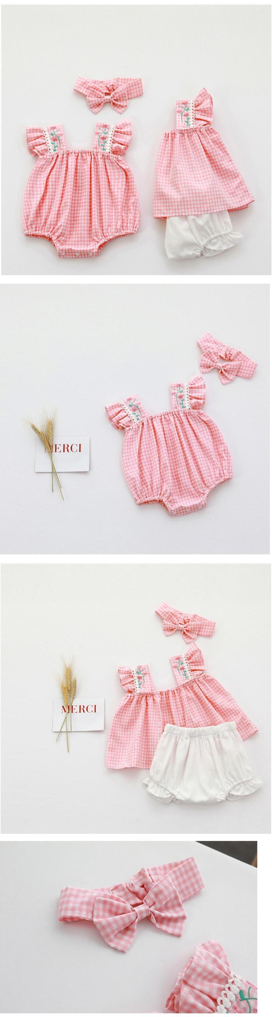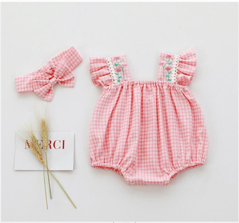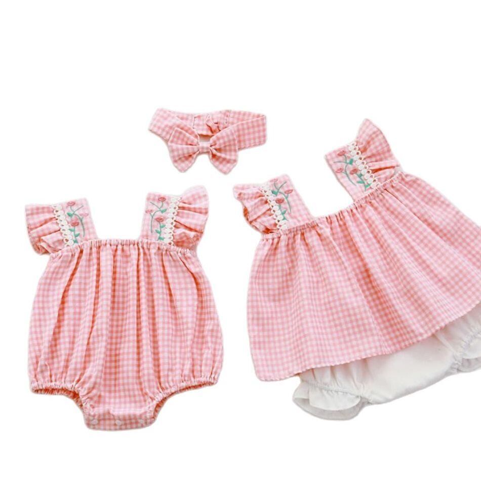 新作 2021年夏のベビーガールズドレススーツピンクの格子縞の幼児キッズシスターベビーロンパース0-4歳の誕生日パーティードレス