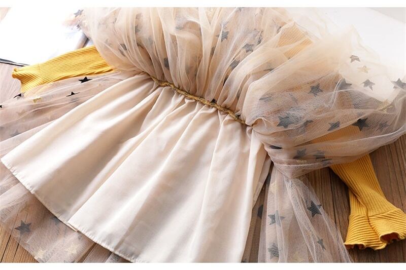 新作 赤いニット長袖ドレス女の子スターチュールチュチュウエディング子供誕生日パーティードレス3-8歳