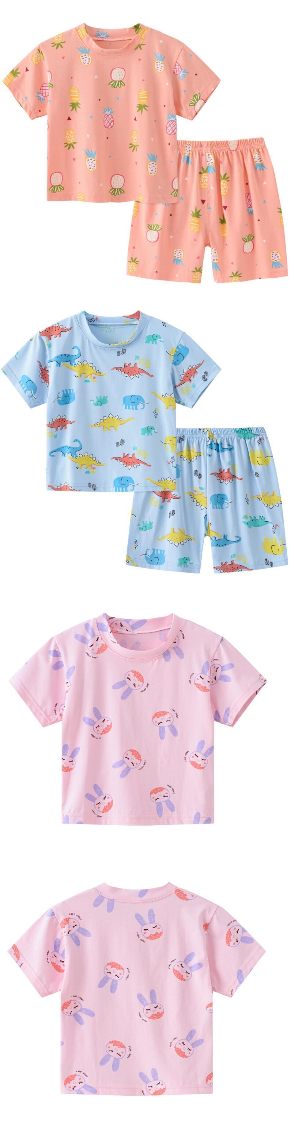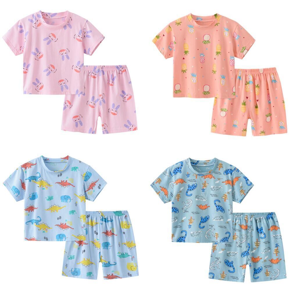 新作 男の子パジャマ女の子2021夏の綿の服セット子供ホームウェアパジャマ男の子パジャマ子供ナイトウェア恐竜/ウサギ