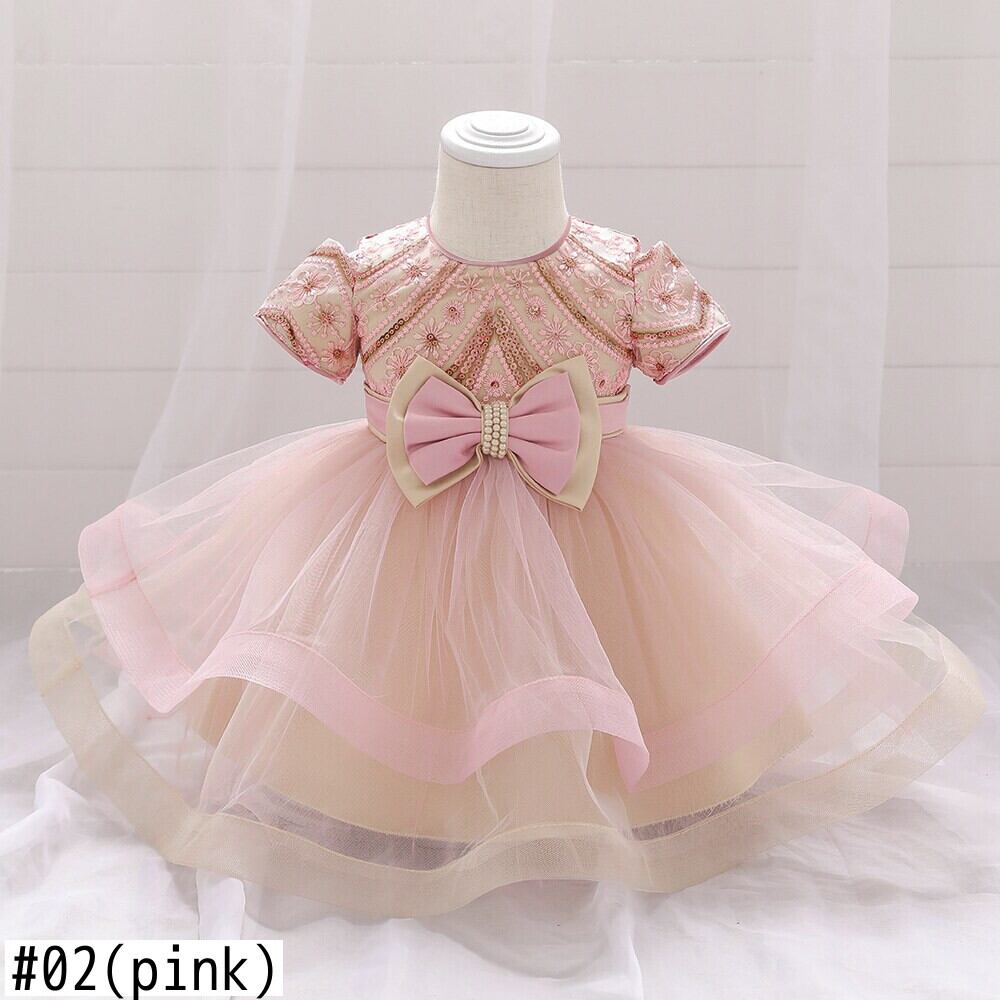 新作 スパンコールの花の誕生日を刺繍した赤ちゃん生まれの豪華なケーキドレス1歳のメッシュパフドレス