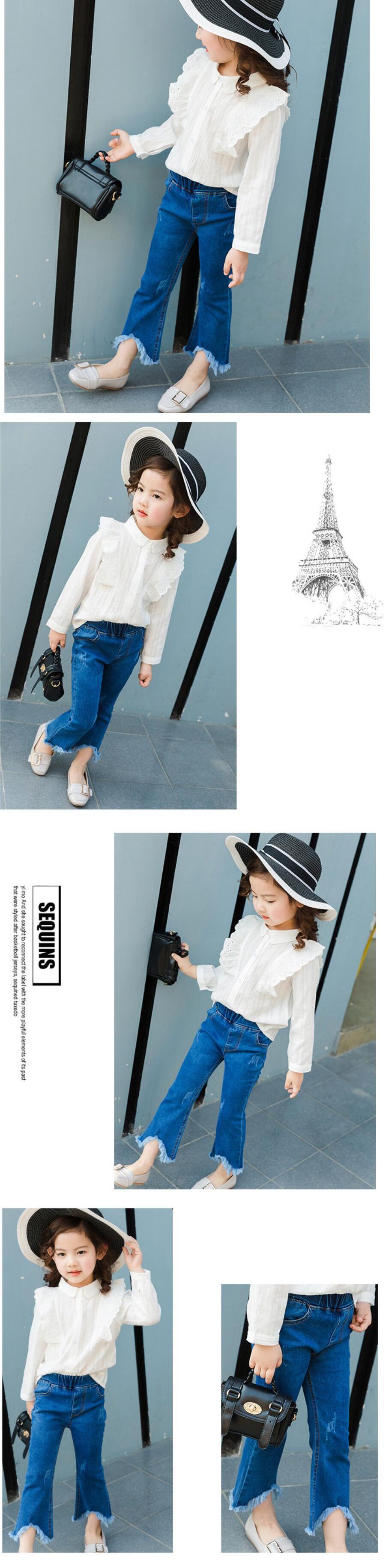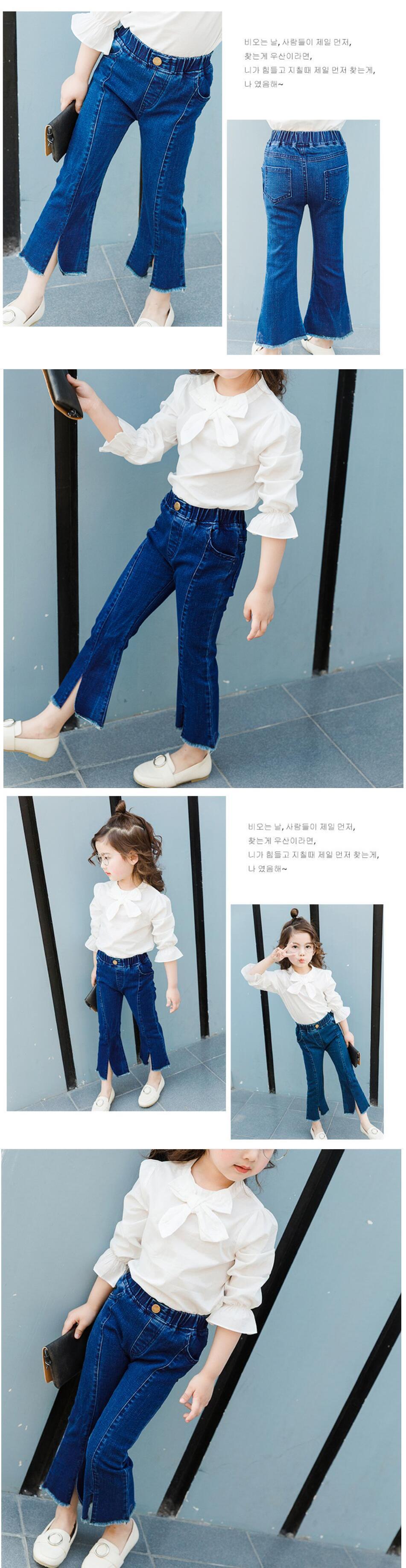 新作 ガールズジーンズ2021年秋スタイルキッズフレアパンツキッズデニムパンツベビーガールズ34 6 7 8 910年