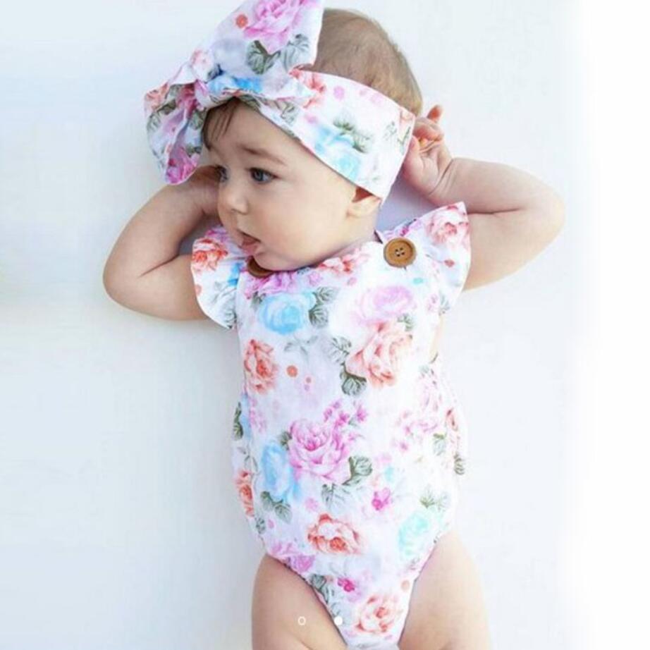 新作 かわいい生まれの幼児キッズガールズロンパースバラフラワージャンプスーツノースリーブサマーリトルベイビーs +ヘッドバンド