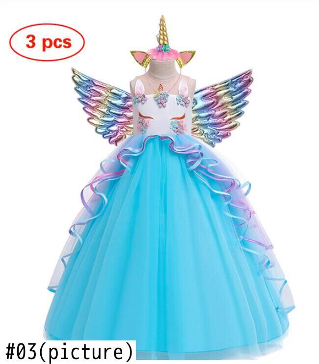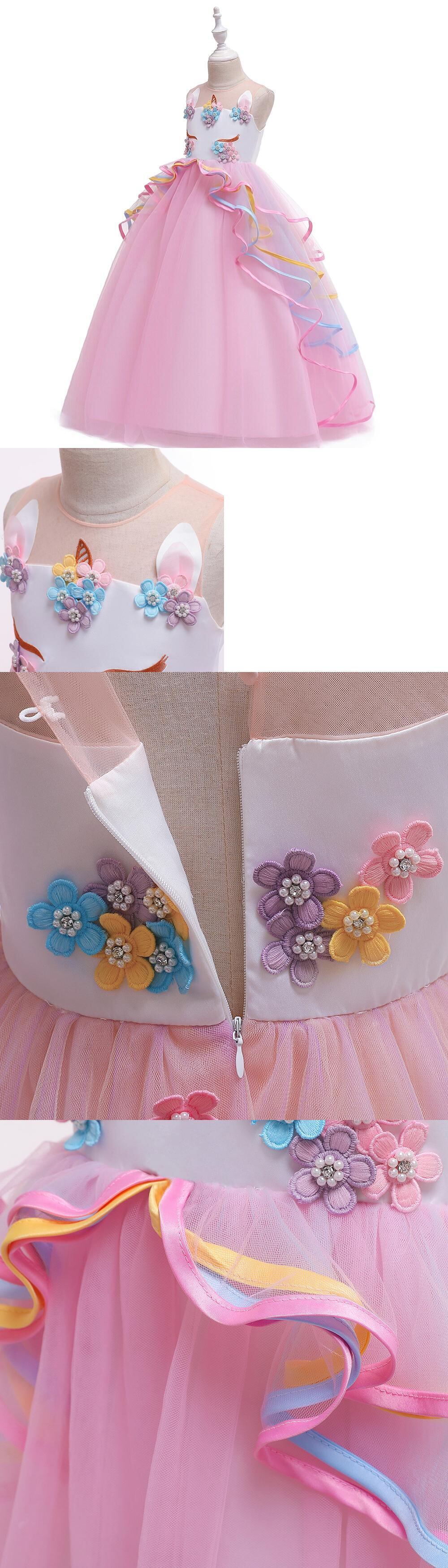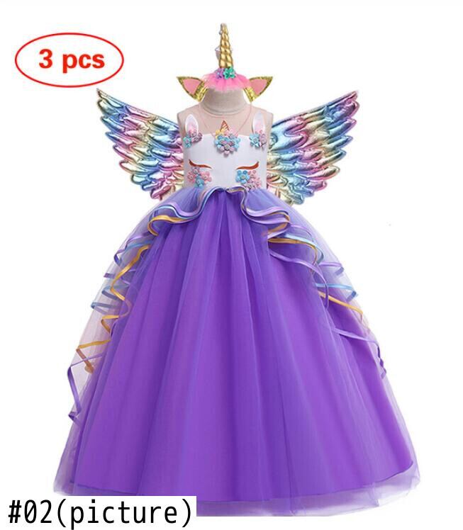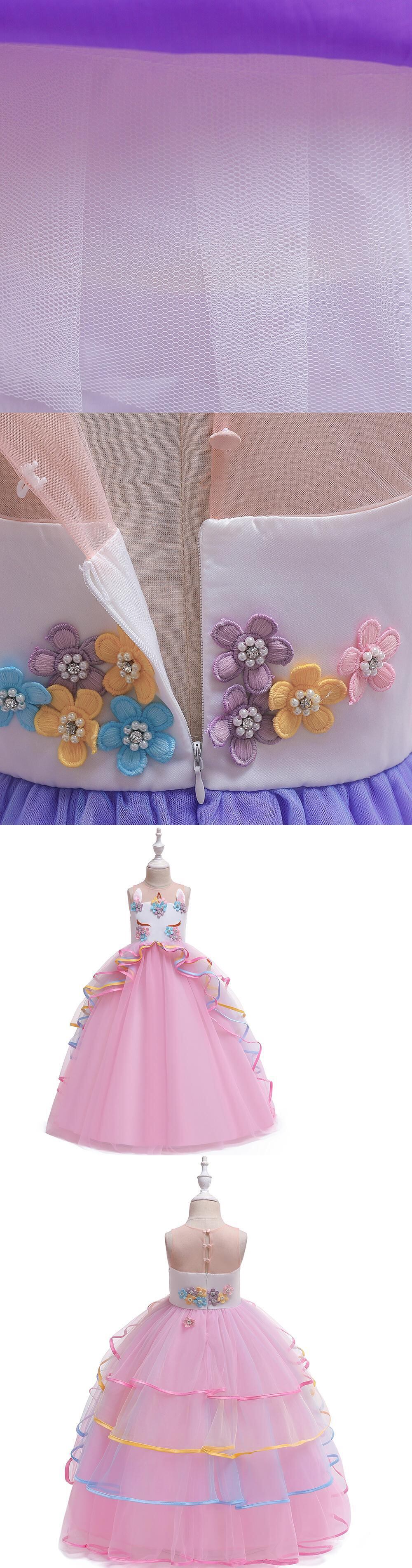 新作 子供服フラワーユニコーンレインボーロングドレスバースデーパーティーユニコーンロールダンスパーマンスドレススーツ