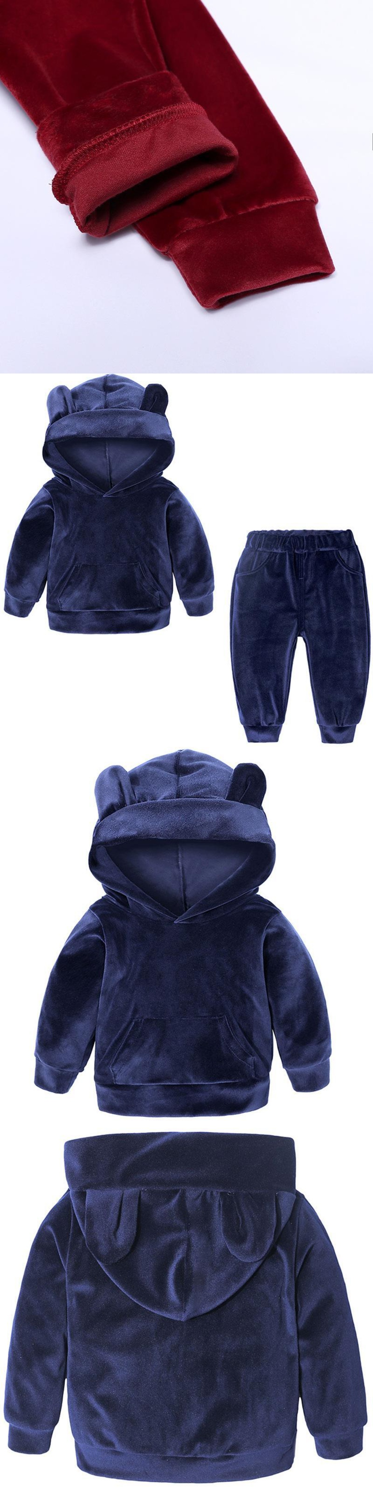 新作 ベビーボーイズガールズベルベットフード付きセットキッズジャケットコートパンツスーツスポーツスーツトラックスーツ幼児子供服セット