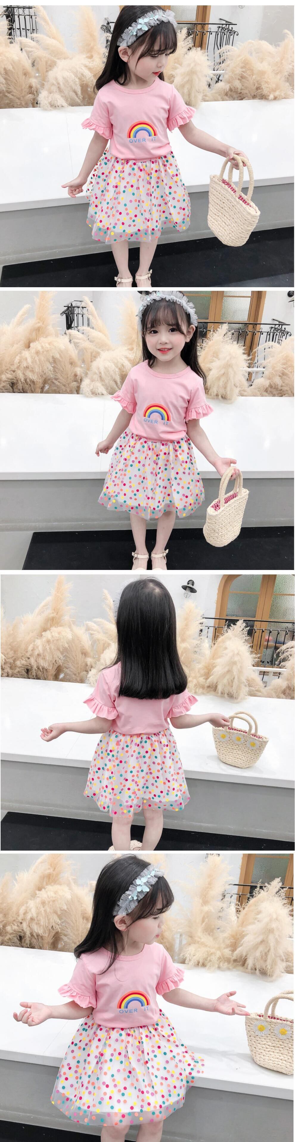 新作 子供2021年夏の幼児の女の子の服白鳥のTシャツ+スターメッシュスカート2個の衣装キッズトラックスーツの女の子のセット