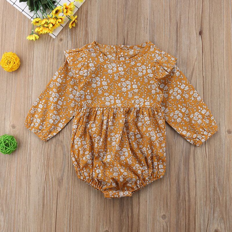 新作 ヴィンテージフラワー生まれの幼児の女の赤ちゃん長袖ロンパースジャンプスーツ秋の女の赤ちゃんの服