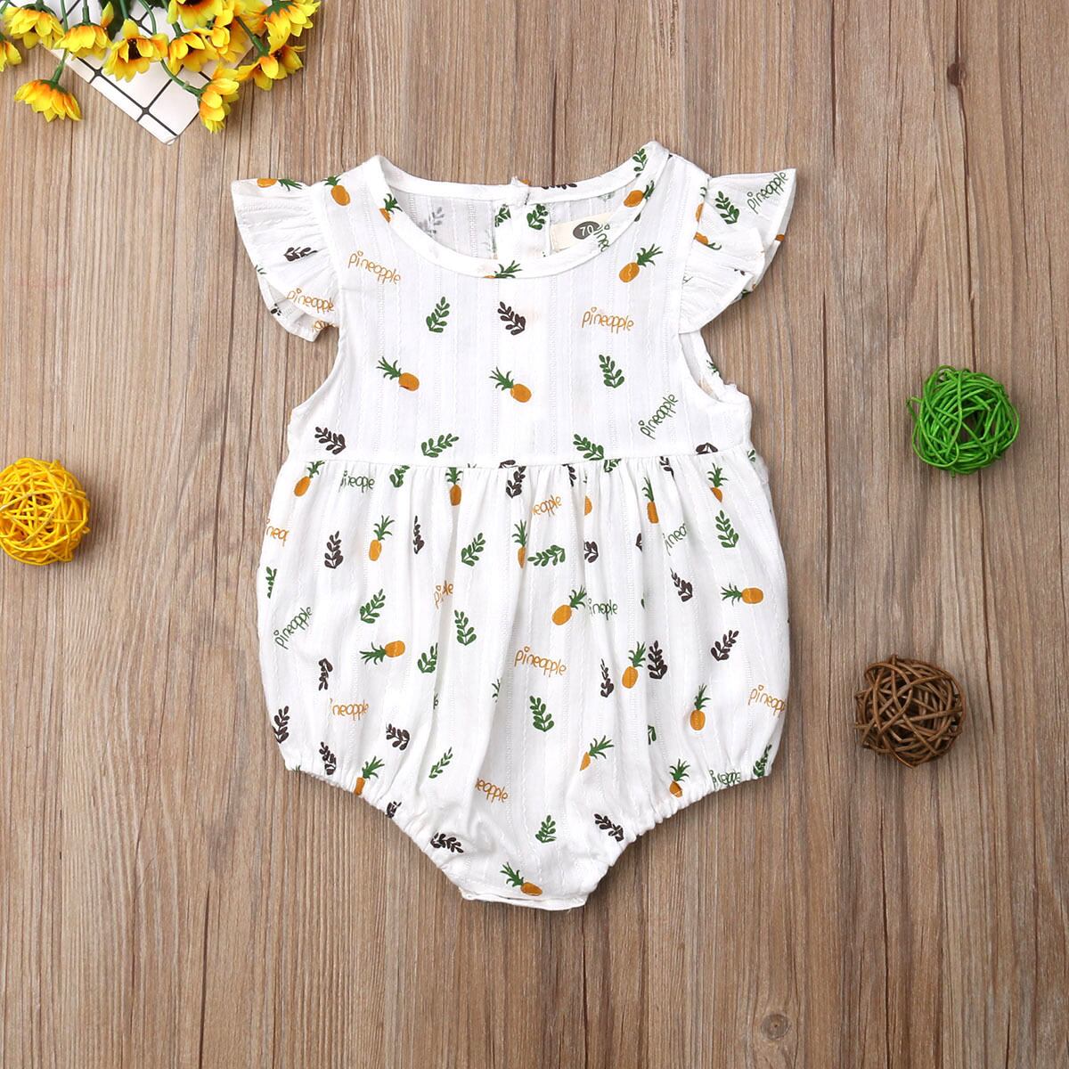 新作 花のパイナップル生まれの女の赤ちゃんの服フリル袖綿幼児の女の子ロンパースジャンプスーツプレイスーツサンスーツ0-24M
