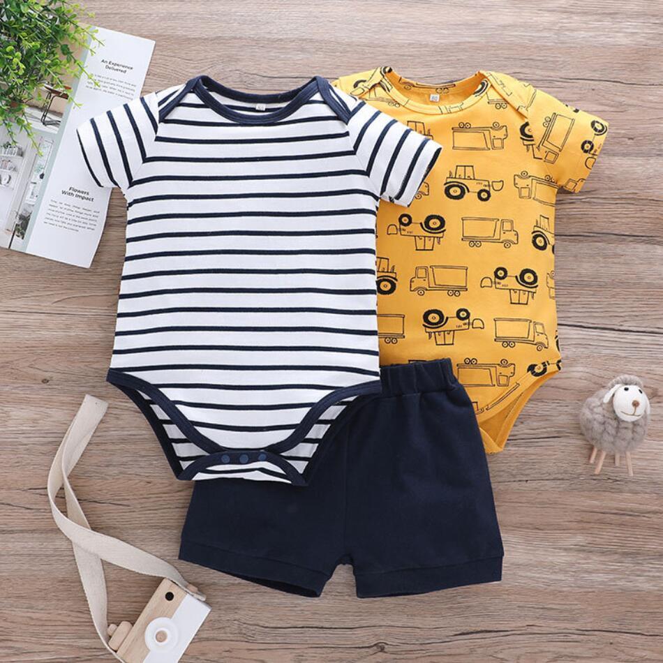 新作 3個/ロット男の子セットコットン漫画ロンパースショーツスーツ生まれジャンプスーツ幼児男の子のボディスーツ