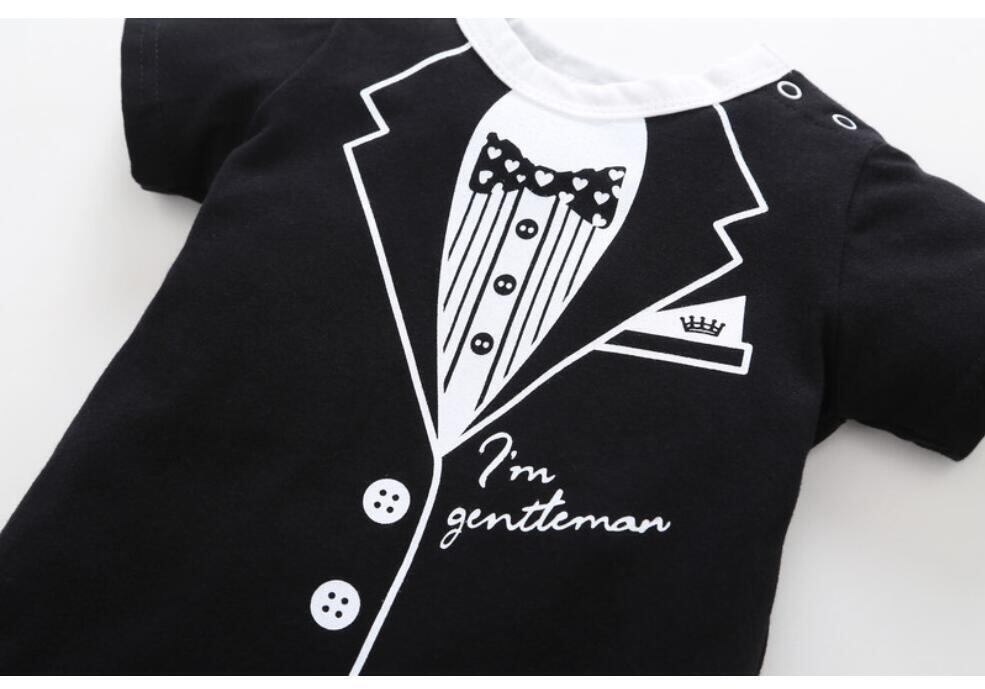 新作 夏の男の子ロンパース紳士ボウタイジャンプスーツボディスーツ0-2歳の男の子の誕生日パーティーの衣装が生まれました