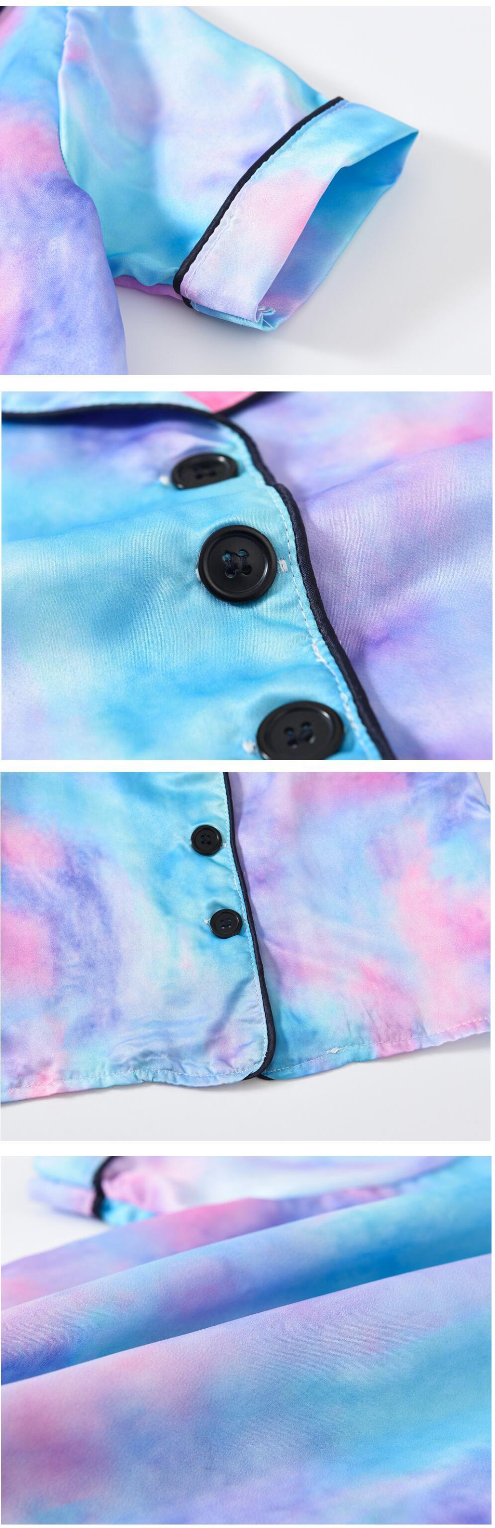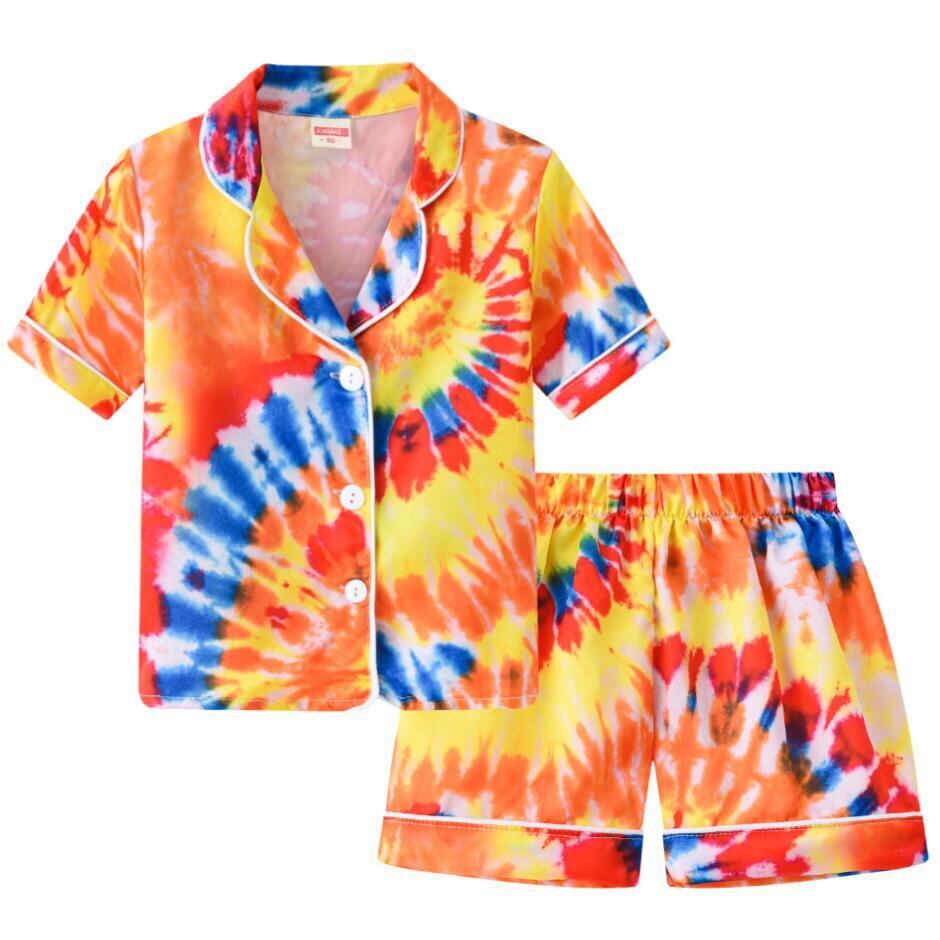 新作 キッズ子供サテンパジャマベビーパジャマセットボーイズガールズタイダイプリント半袖ショーツパジャマコットンナイトウェア服