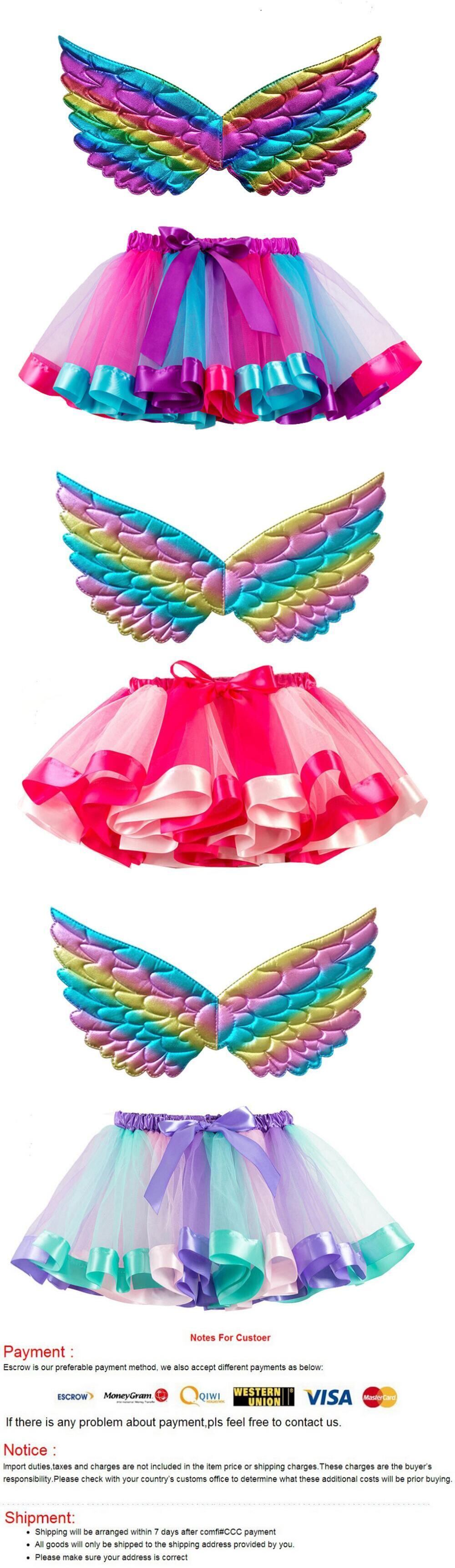 新作 ユニコーンガールチュチュスカートレインボーパーティー子供誕生日ショートドレス+翼幼児キッズ衣装