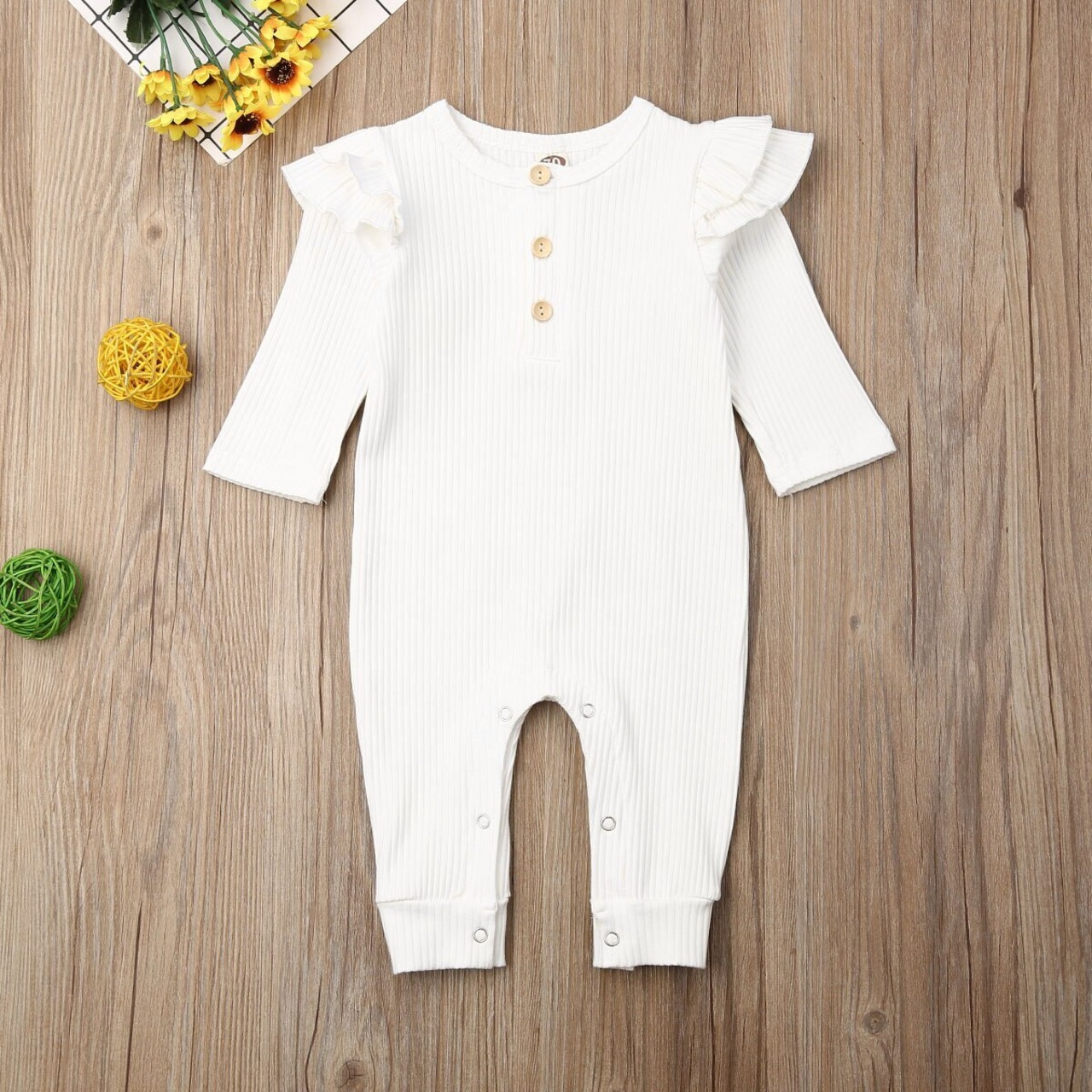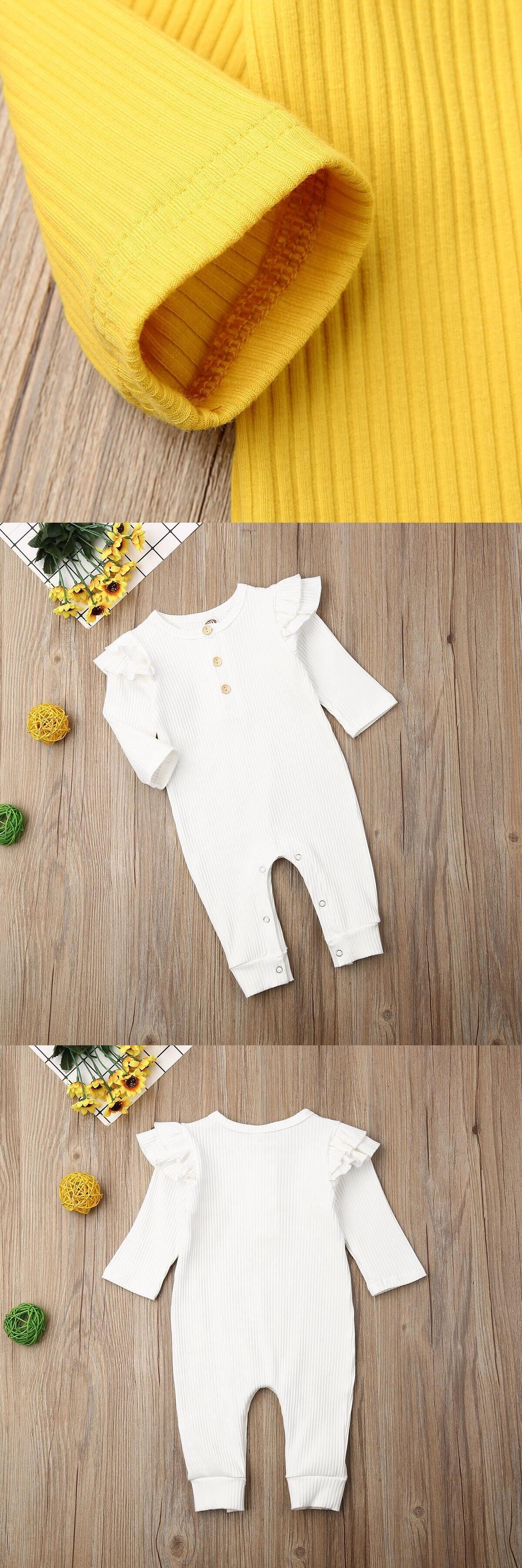 新作 秋冬生まれのベイビーガールボーイフリルソリッドロンパースジャンプスーツニット暖かい服装0-24M